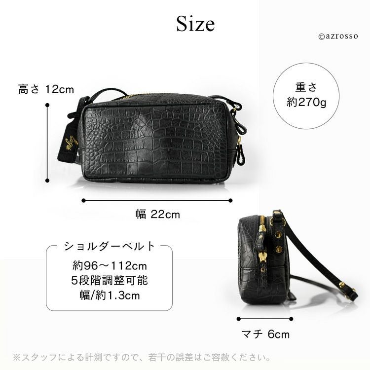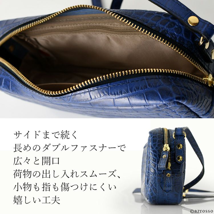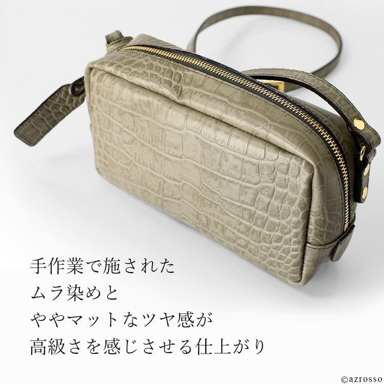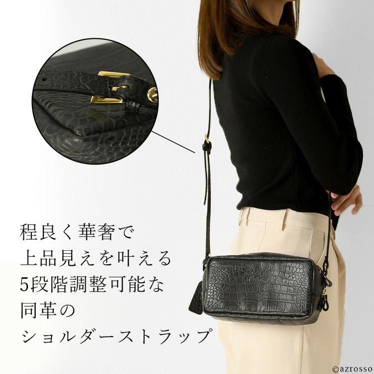 日本製 クロコ 型押し レザー ミニ ショルダー バッグ レディース 斜めがけ 軽い 小さめ 本革 スクエア ミニバッグ ブランド 横長 カジュアル 軽量