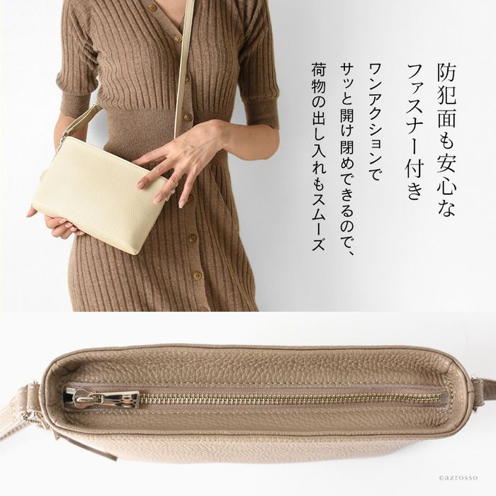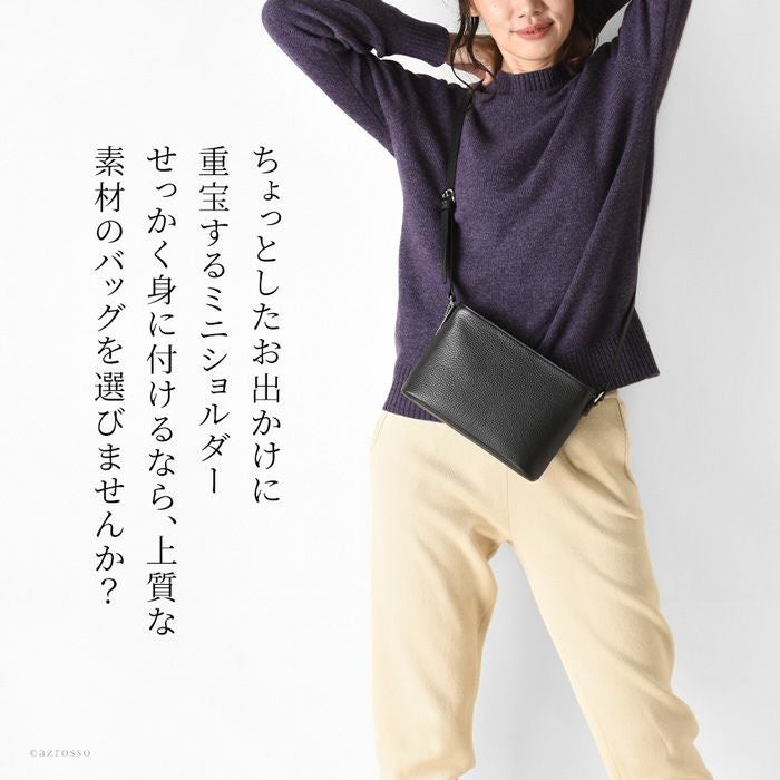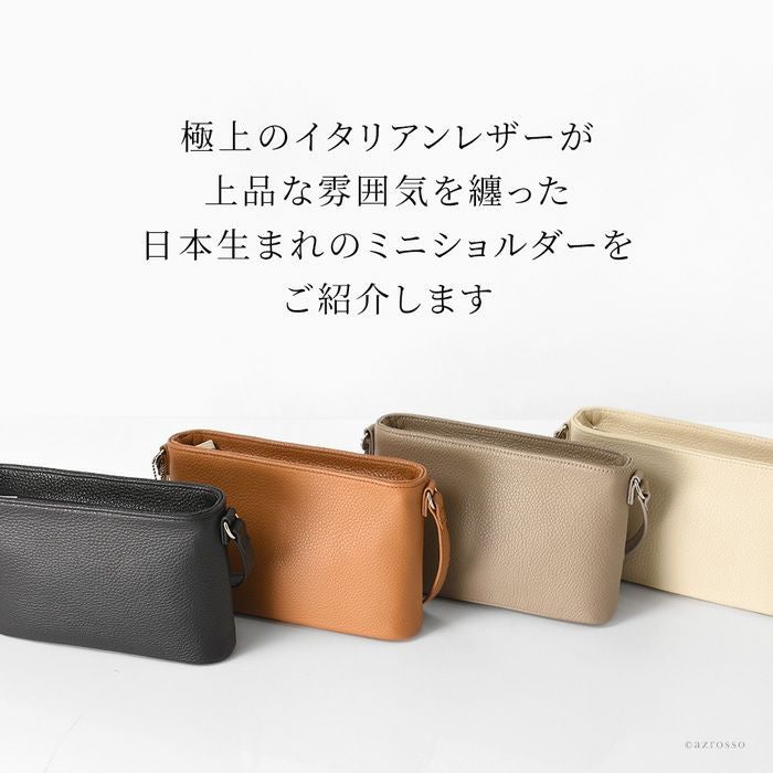 日本製 ミニ ショルダーバッグ レザー 本革 斜めがけ ポシェット トープ キャメル 黒 ブラック アイボリー ミニバッグ