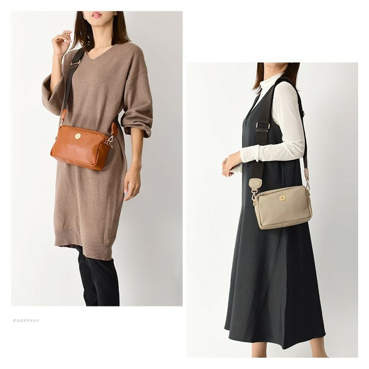 日本製 ショルダーバッグ 軽い 斜めがけ 牛革 ミニバッグ ダブルファスナー ブラック グリーン キャメル ベージュ 豊岡 鞄 ブランド 豊岡工房 レディース