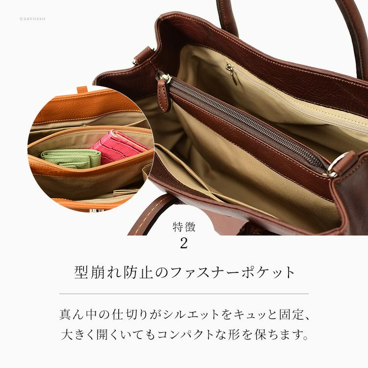 内側:ファスナーポケット×2(うち1つは中央仕切り)