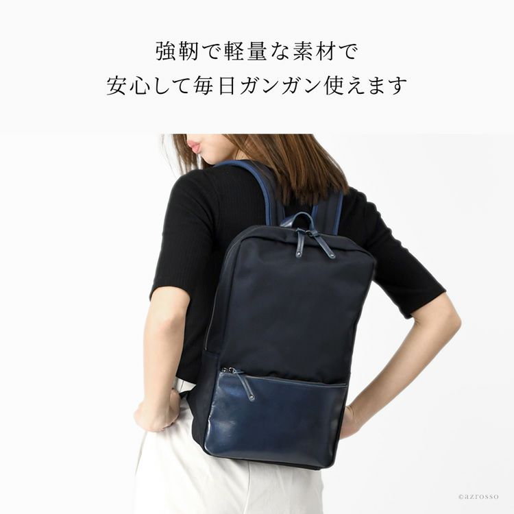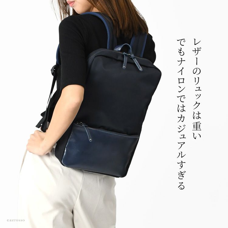 日本製 ナイロン レザー リュック 500g以下 軽量 薄型 PC収納 軽い ビジネスリュック レディース ネイビー 紺