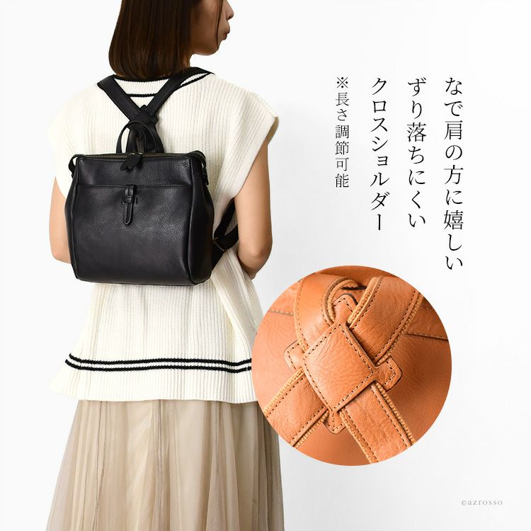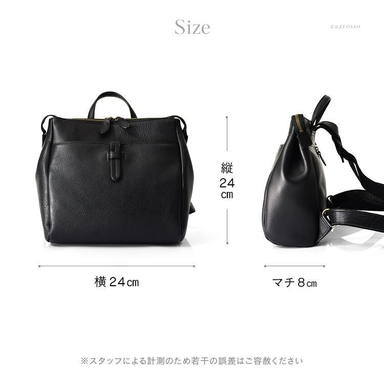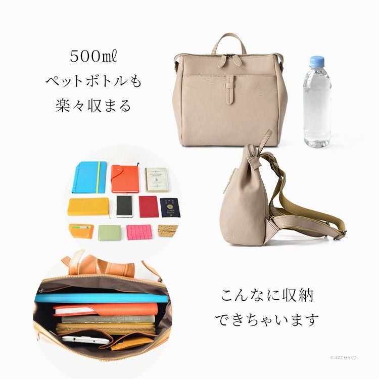 ▼特徴:ミニリュック ミニマル マチ広 スクエア型 リュックサック 牛革 無地 国産 レザー 500mlペットボトル入る コンパクト Wファスナー ダブルジップ シンプル おしゃれ きれいめ 大人 背面 ファスナーポケット ビジネスリュック 横長 なで肩対応 クロスショルダー 小柄 低身長 小さい 小さめ