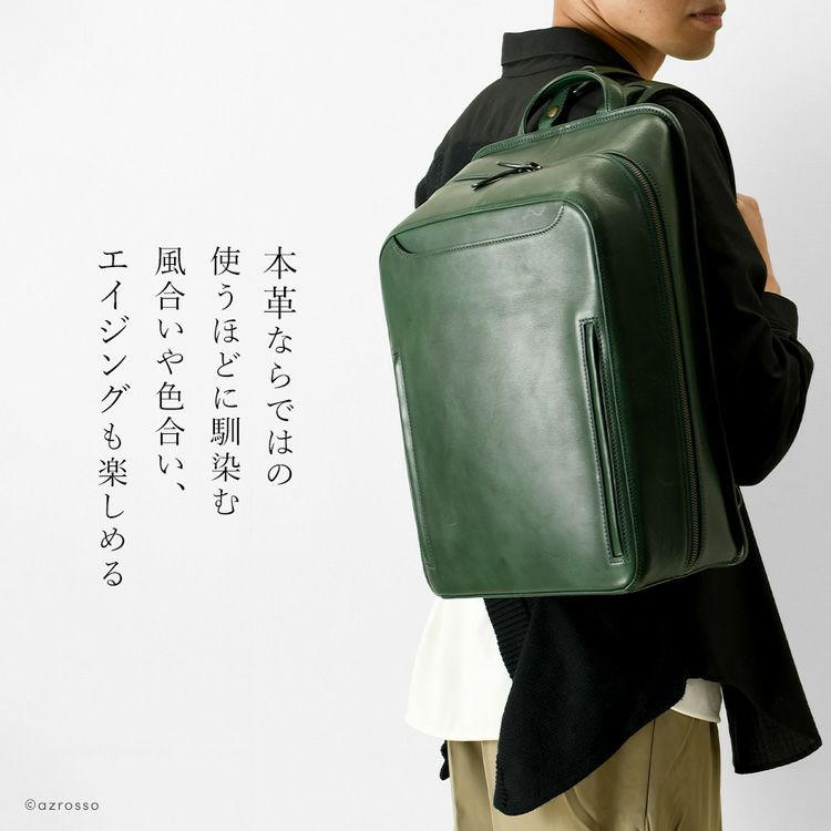 オールレザーならではの高級感、スタイリッシュで上品な本革リュックを日本製ブランド生田鞄(IKUTA KABAN)より。洗練された傾斜したフォルム。ノートPCも入るスクエア型大容量リュック 日本製 本革 レザー ビジネスリュック 大容量 A4 スクエア 縦型 黒 緑 キャメル 本革 生田鞄 メンズ