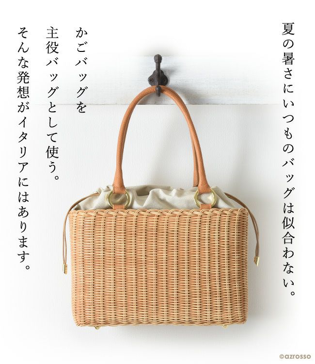 かごバッグの軽やかな雰囲気と、本革ハンドバッグのカッチリ感の、良い所どりなデザインは、かごバッグと言うよりも、「ラタンで作ったハンドバッグ」と言っても良いかもしれません。