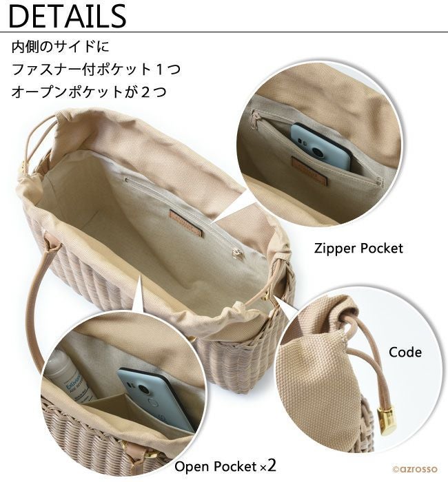 メイン部分の素材がラタンと言うこと以外は、ほぼレザーのハンドバッグと同じ作り。