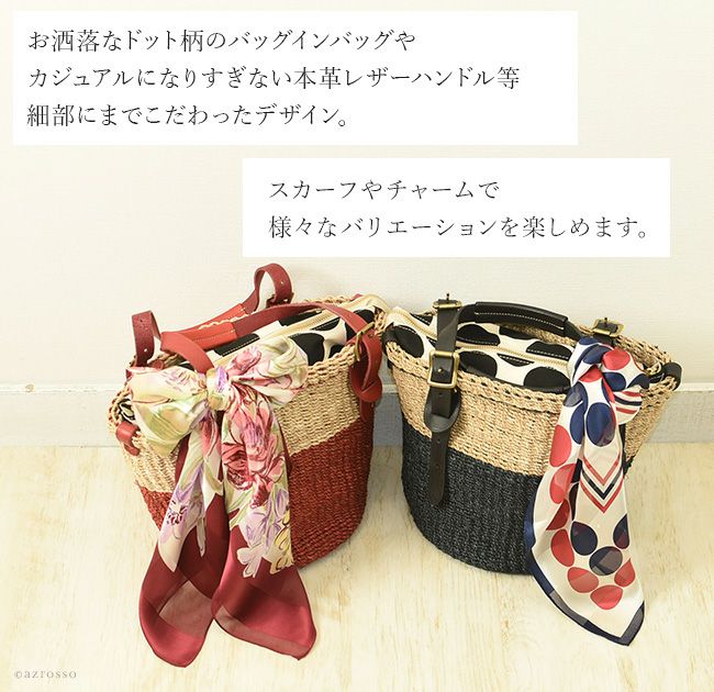 かごバッグ レディース 夏素材 日本製 本革使用 外せる インバッグ ブラック レッド