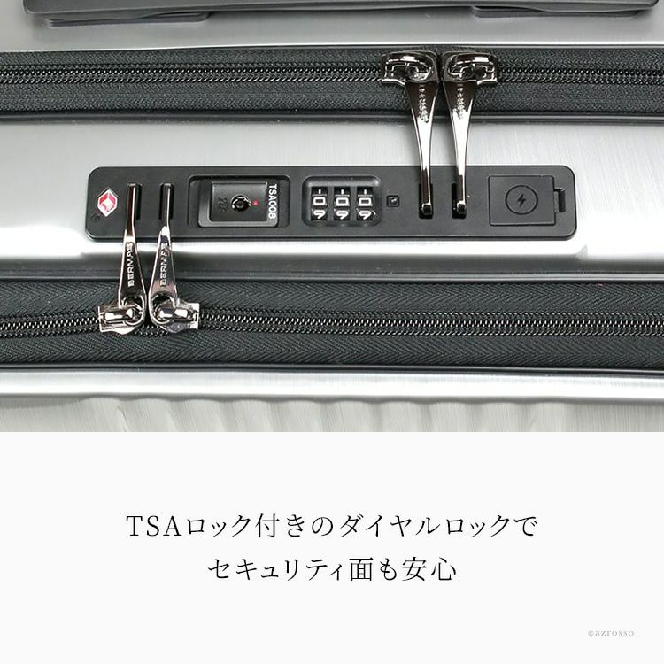 3泊 Mサイズ 中型 フロントオープン スーツケース キャリーケース バーマス おしゃれ レディース 軽い 使いやすい 小さめ ロック ビジネス USB ブラック シルバー ビジネス 旅行 53L