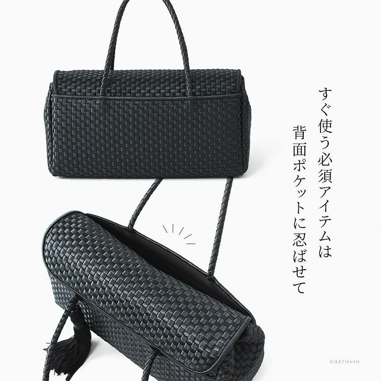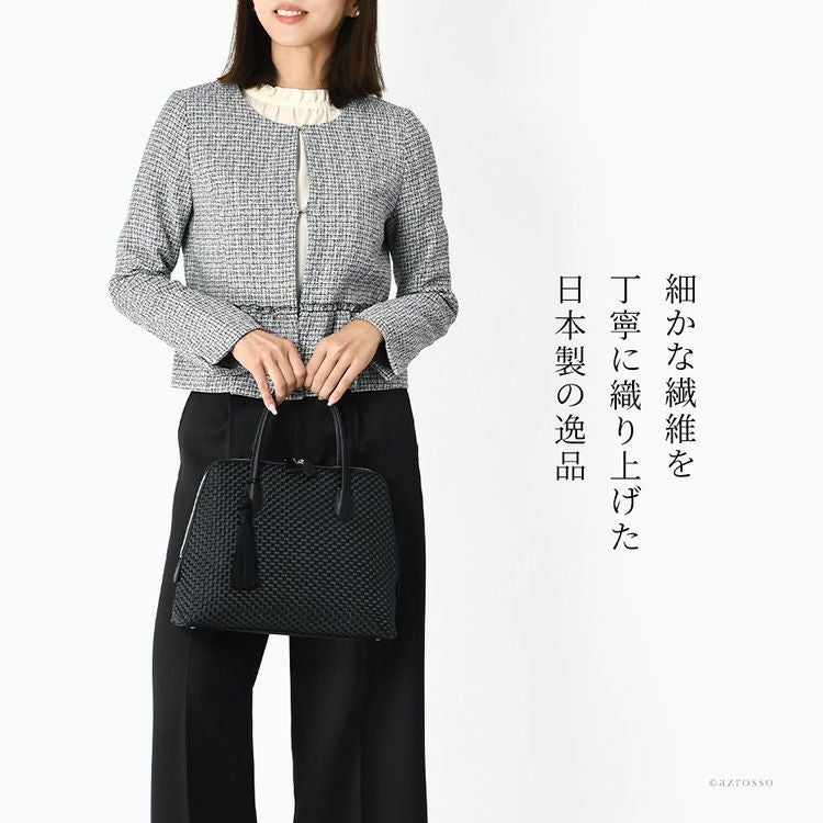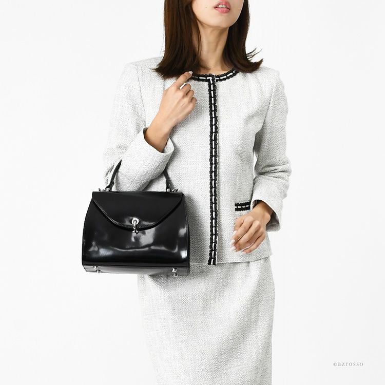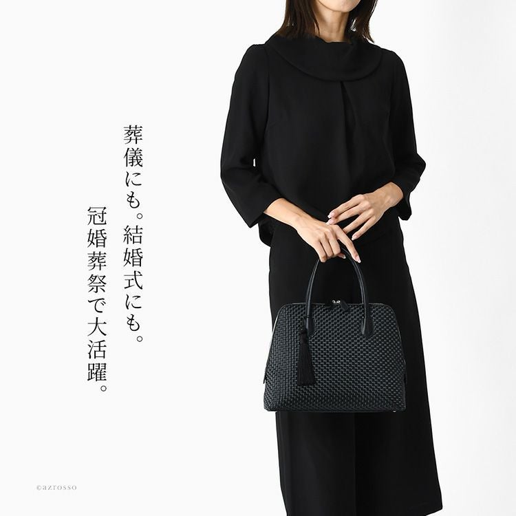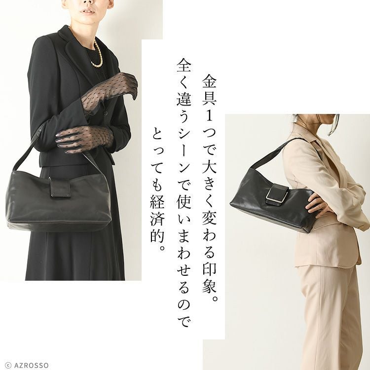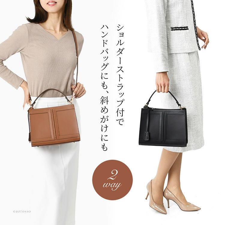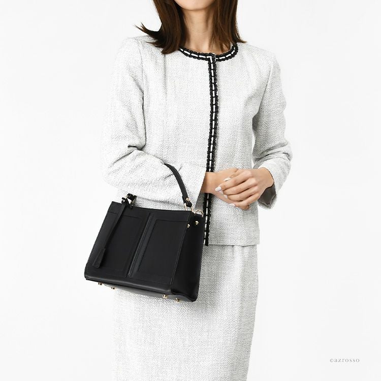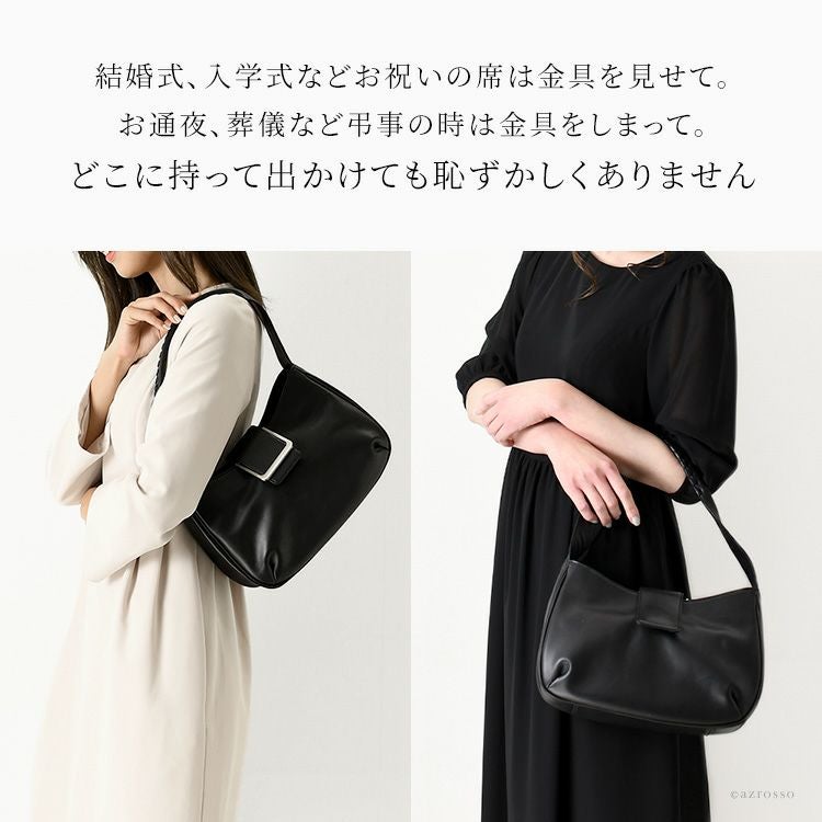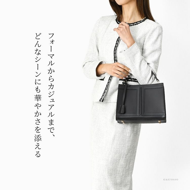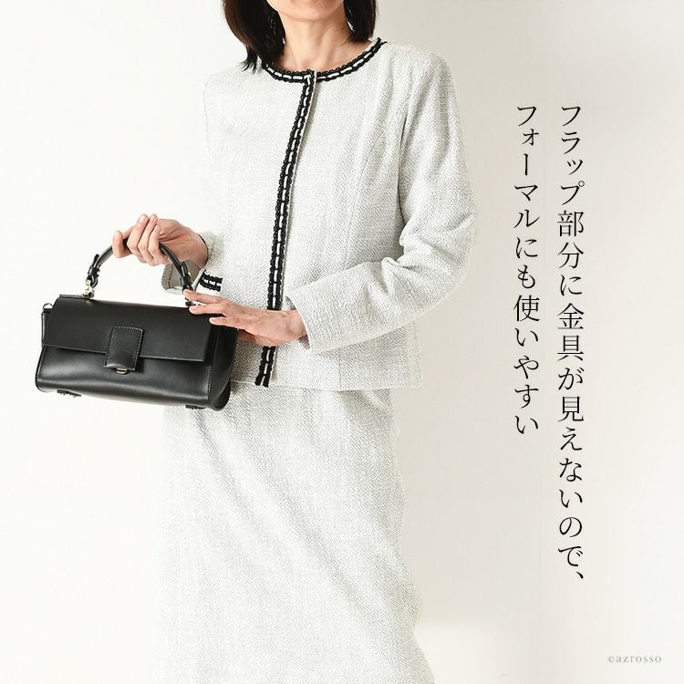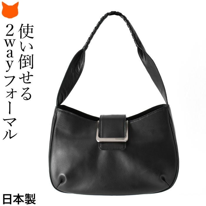 金具部分を隠せる2wayハンドバッグ。冠婚葬祭(結婚式 法事 お通夜 お葬式 慶弔)、学校行事(入学式 卒業式 お受験面接 発表会)、食事会、七五三など大活躍。普段使いもできるフォーマルバッグ 2way ソフトフォーマルバッグ 本革 ハンドバッグ レザー 黒 ブラック 日本製 ブランド