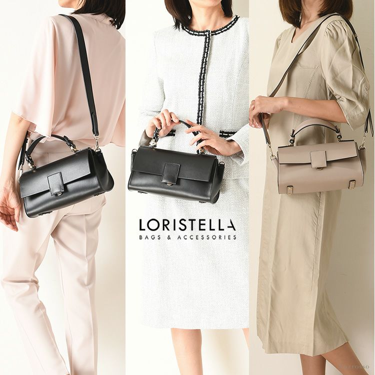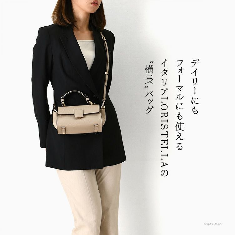 結婚式や慶弔、学校行事(入学式 卒業式 お受験面接 発表会)に大活躍の美しいレザーのフォーマルバッグをイタリアLORISTELLA(ロリステッラ)より。ショルダーバッグとしても使える2way イタリア製 フォーマルバッグ 横長 ハンドバッグ 2way ショルダーバッグ 本革 バッグ レザー 黒 ブラック トープ ベージュ