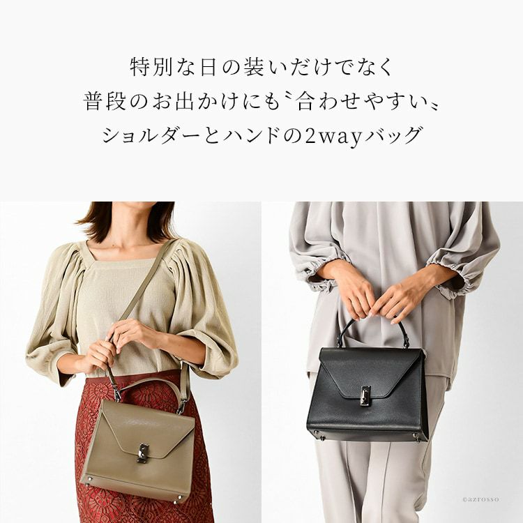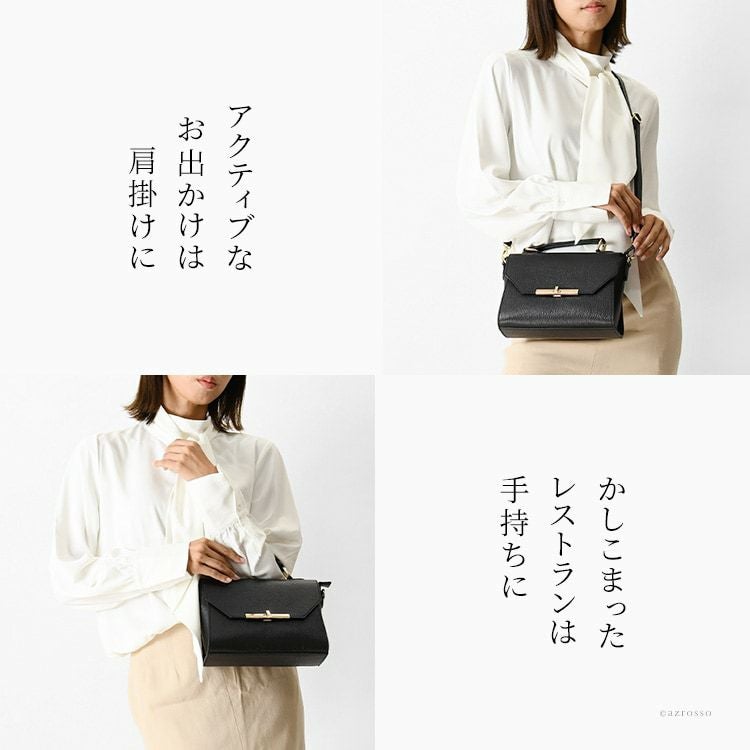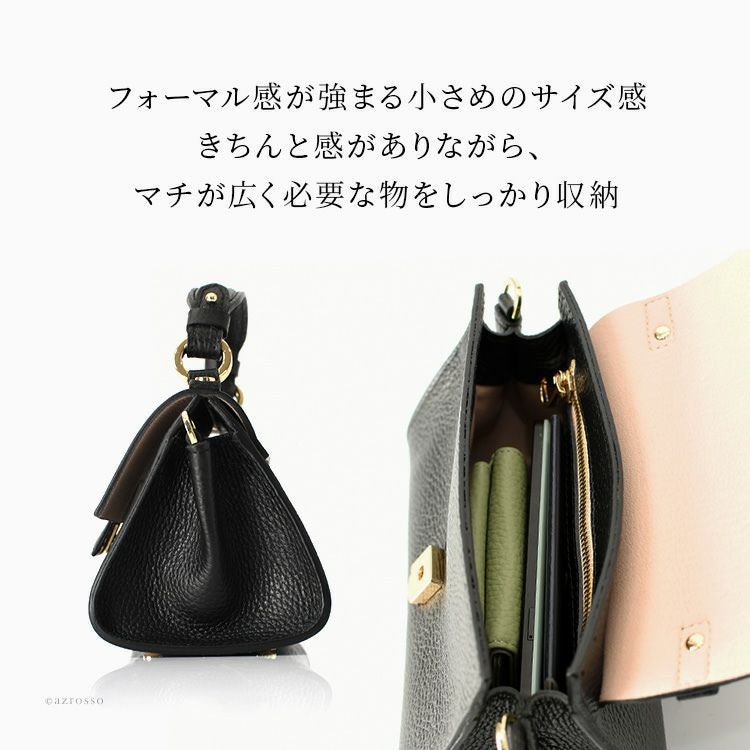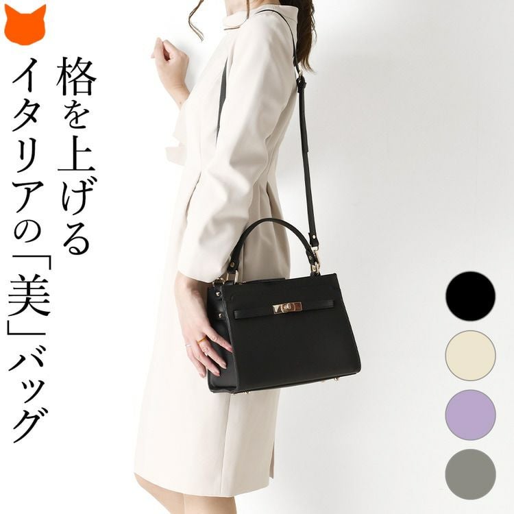 高級感あふれるイタリアブランドの本革ハンドバッグ。ショルダーバッグとして斜めがけもできる2way。きれいめでフォーマルなデザインだから、パーティーバッグや結婚式、入学・卒業式にも活躍する小さめバッグ イタリア製 ショルダー ハンドバッグ レディース ショルダーバッグ 高級 2way 本革 斜め掛け 小さめ 肩掛け きれいめ 大人 上品 フォーマル 自立