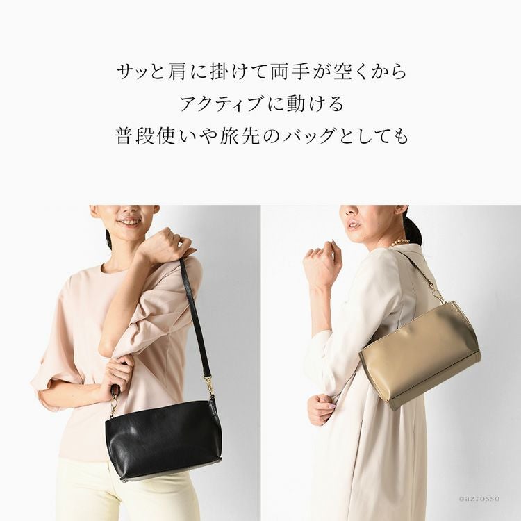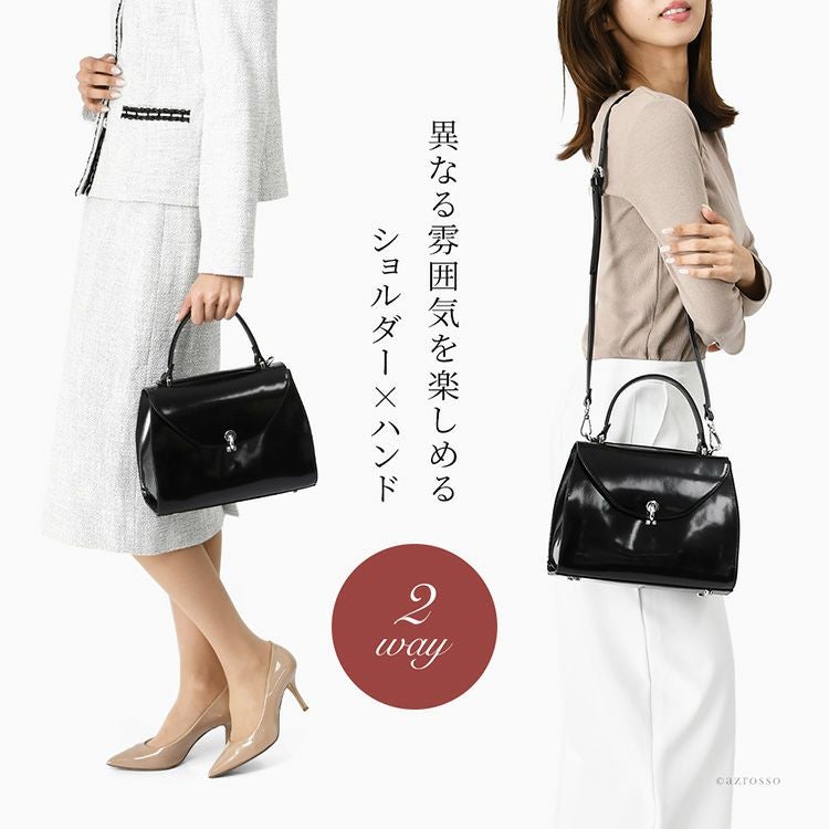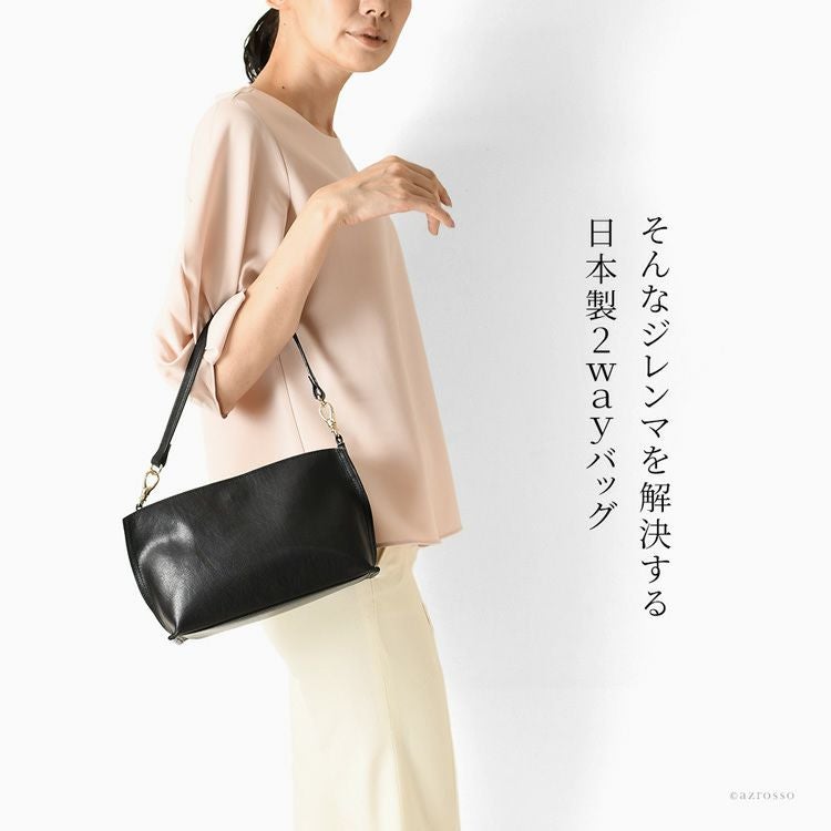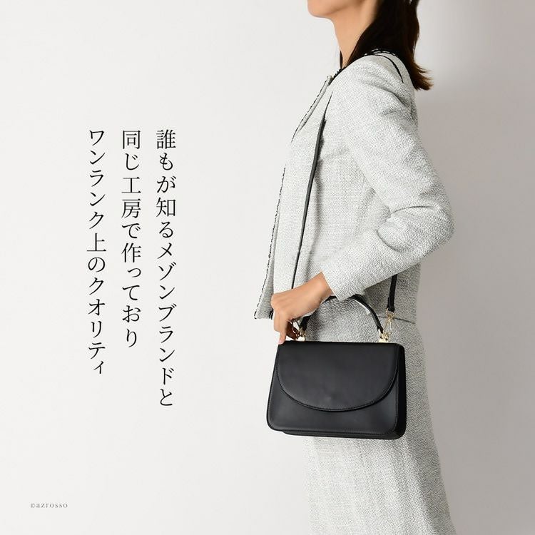 フォーマルだけでなく普段使いもできる、シンプルな日本製レザーバッグ。ハンドバッグ、また肩掛けのショルダーバッグとして使える便利な2way。小ぶりながら必要なものはしっかり入る 日本製 普段使いもできるフォーマルバッグ ショルダーバッグ ミニバッグ 小さめ 2way 本革 セレモニーバッグ ブランド 入学式 卒業式