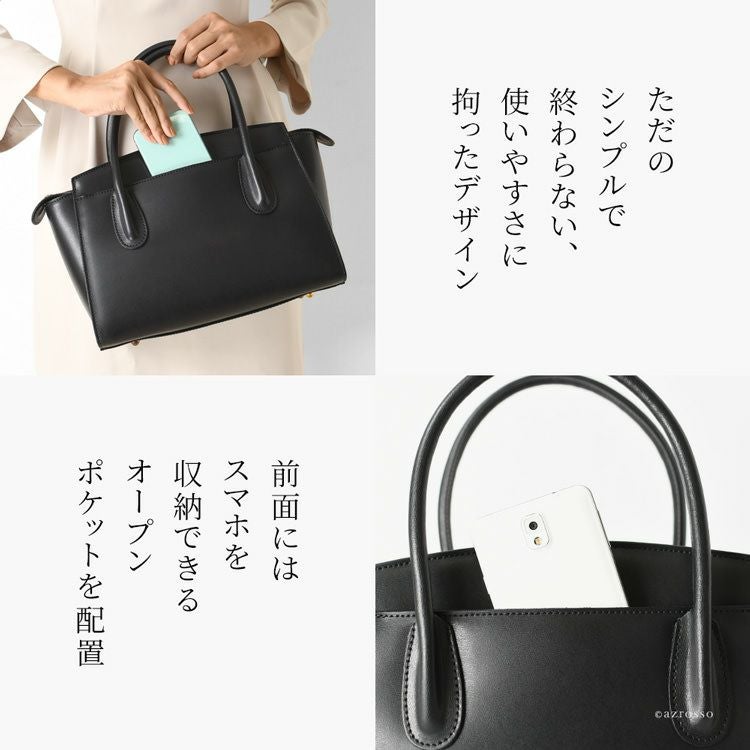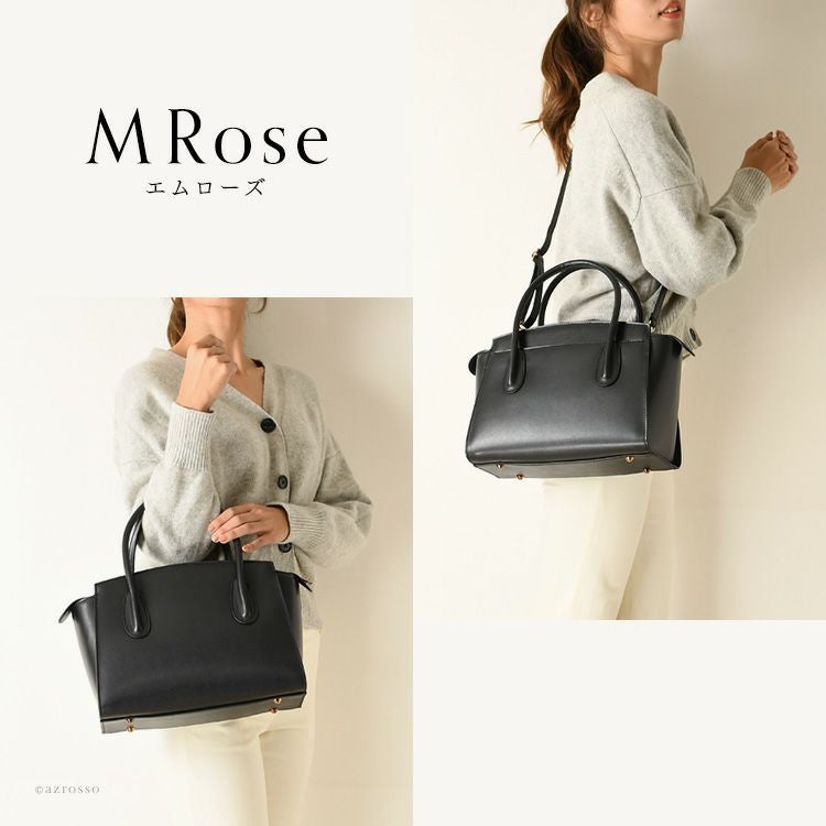 TPOを選ばず万能に持てる美シンプルなブラックレザー(黒)のハンドバッグ。A4収納、マチ広で自立する上にショルダーバッグとしても持てる2way。イタリア製 M Rose(エムローズ エンメローズ)のフォーマルバッグ 本革 ハンドバッグ フォーマルバッグ 黒 a4 大きめ バッグ レザー 2way ショルダーバッグ 肩掛け 斜め掛け イタリア製 ブラック フォーマル レディース