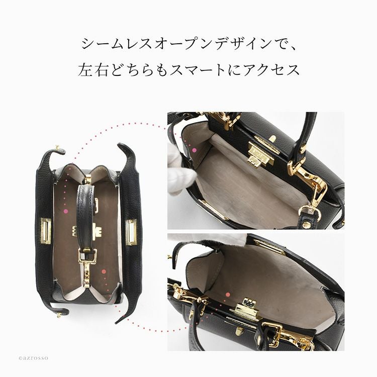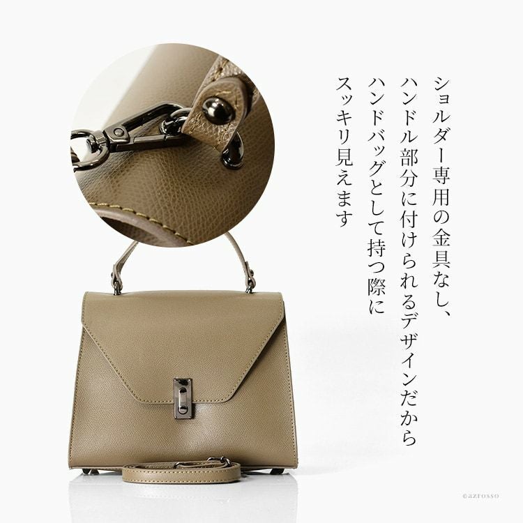 普段使いからフォーマルにも持てる上質レザー×洗練デザインのイタリア製ミニバッグ。ハンドバッグのハンドル部分の金具を外すだけで、そのままショルダーバッグ変わる2way仕様 イタリア製 2way ハンドバッグ ショルダーバッグ ミニ 小さめ レディース 金具なし イタリアブランド バッグ 普段使いもできるフォーマルバッグ 本革