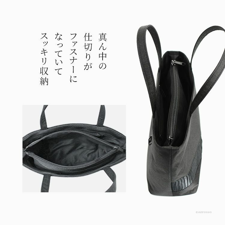 日本の老舗Takaya(高屋)ブランド アルカンのサブバッグとしても使えるフォーマルバッグ。上品なサテン生地で、A5サイズが入る薄型トート。入学式や卒業式、結婚式など冠婚葬祭から普段使いまで使える万能なバッグ。 サブバッグ フォーマル 冠婚葬祭 黒 普段使い タッセル付き 薄型トート 撥水 軽量 慶弔両用 セレモニー ブラックフォーマル 日本製 高屋 アルカン