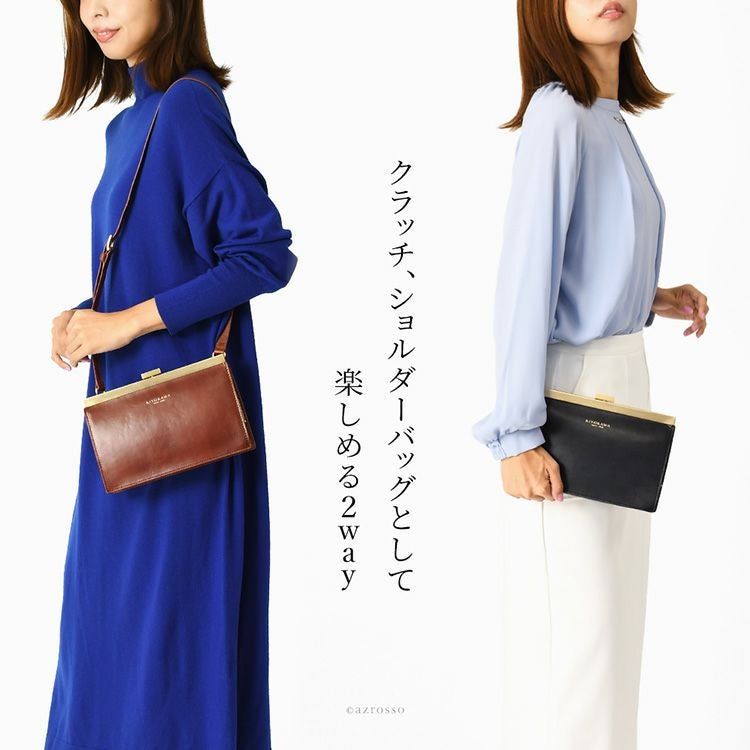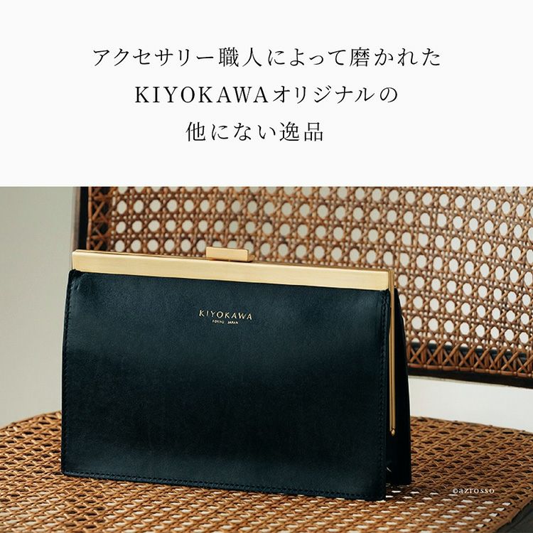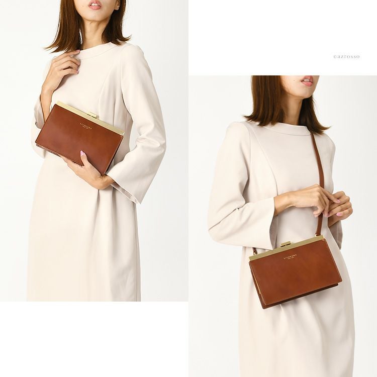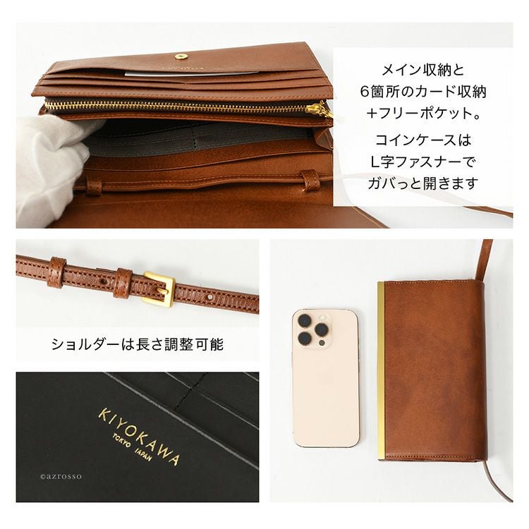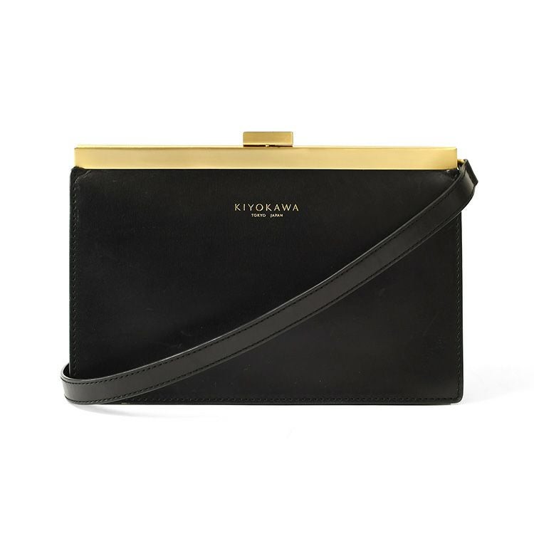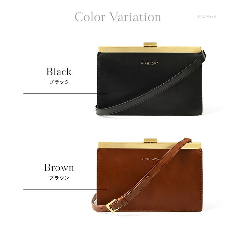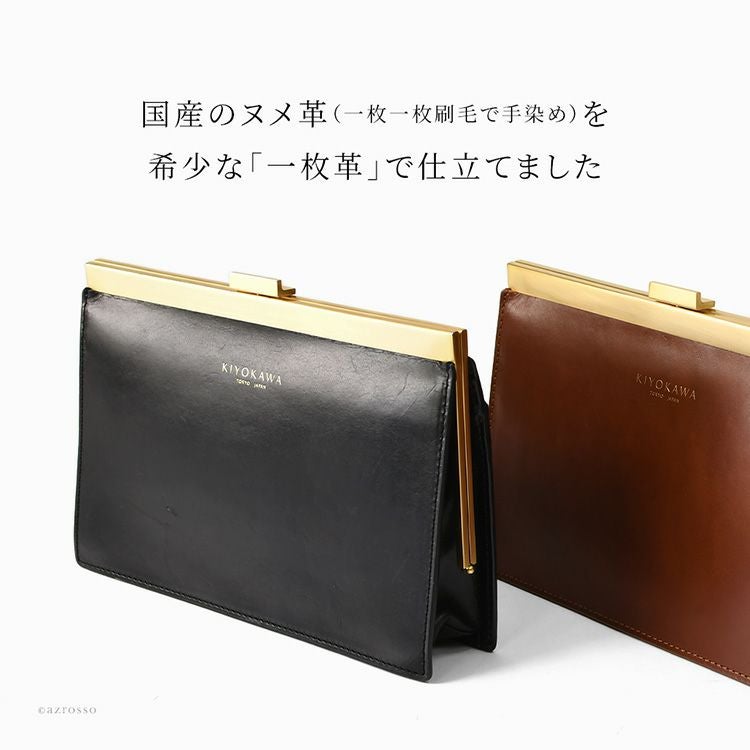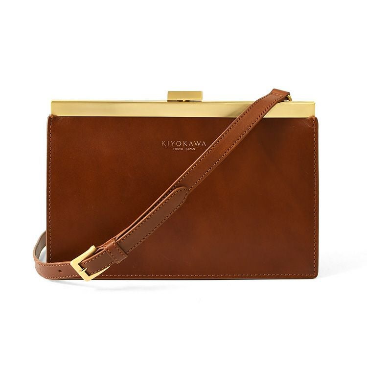 ゴールドコーティングの口金が真の上質感をまとう、一枚革で仕立てた日本製本革お財布ショルダー。ミニクラッチバッグやお財布としても使えるフォーマルシーンに合うレディースショルダーバッグ KIYOKAWA 日本製 本革 ヌメ革 お財布ショルダー ウォレットバッグ 一枚革 高級 がま口 クラッチバッグ フォーマル 清川商店(キヨカワ)