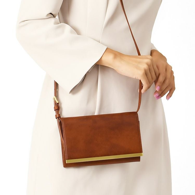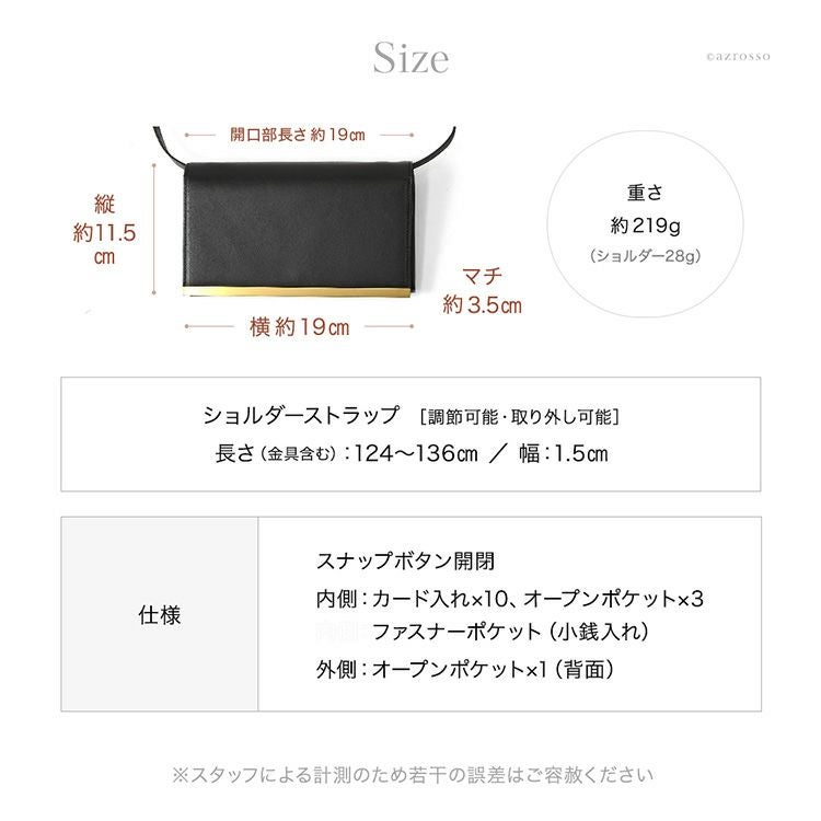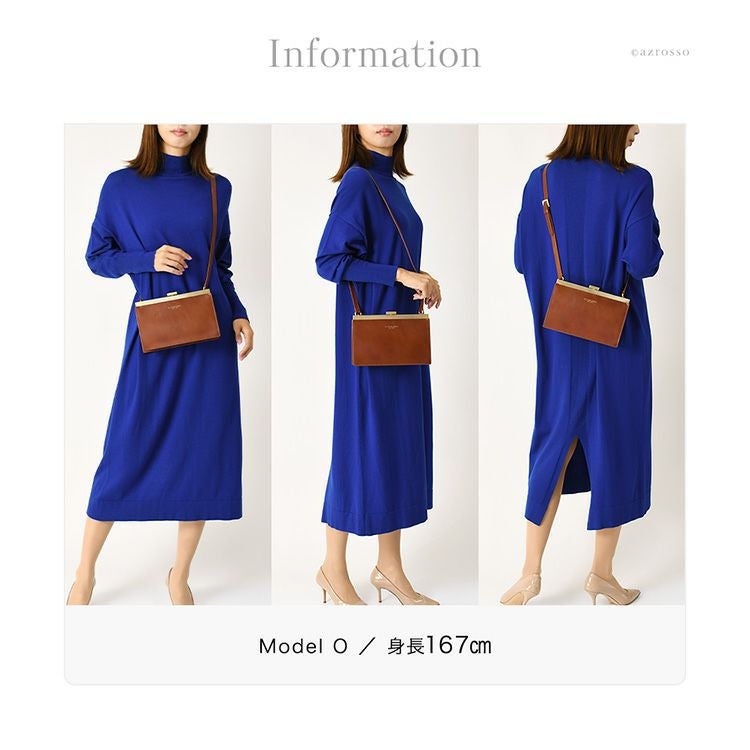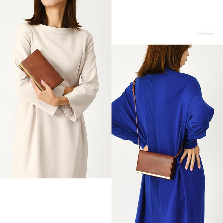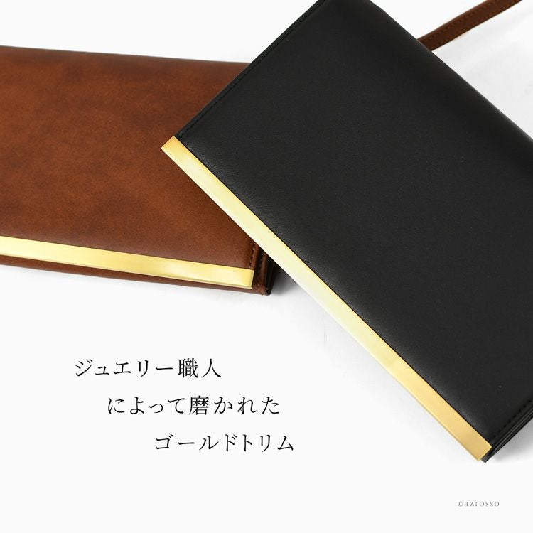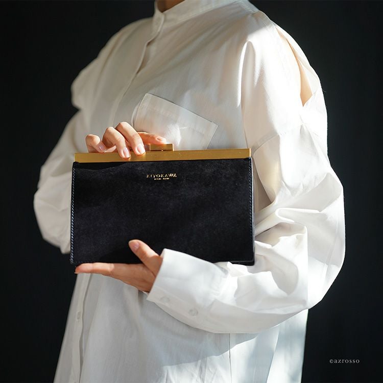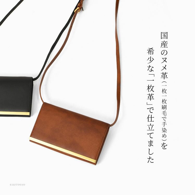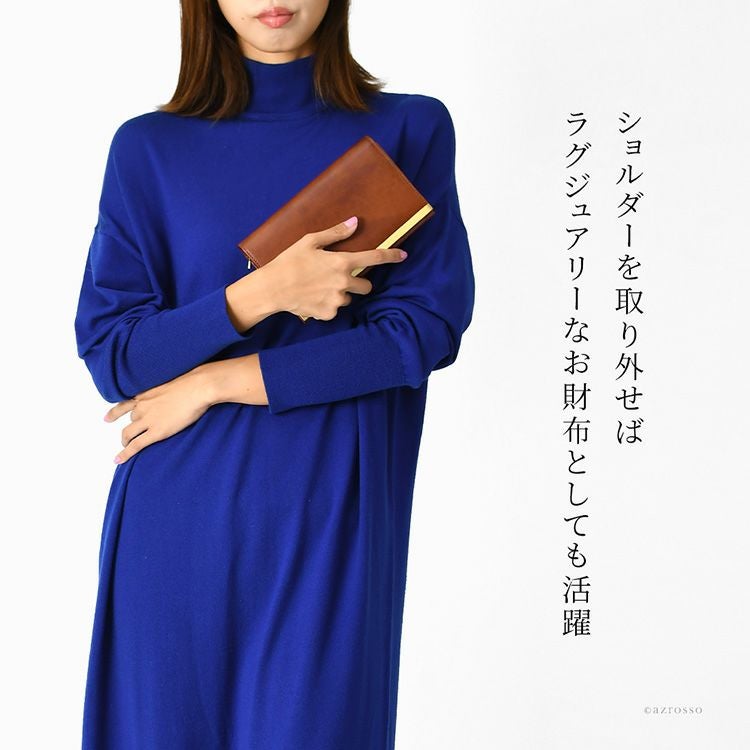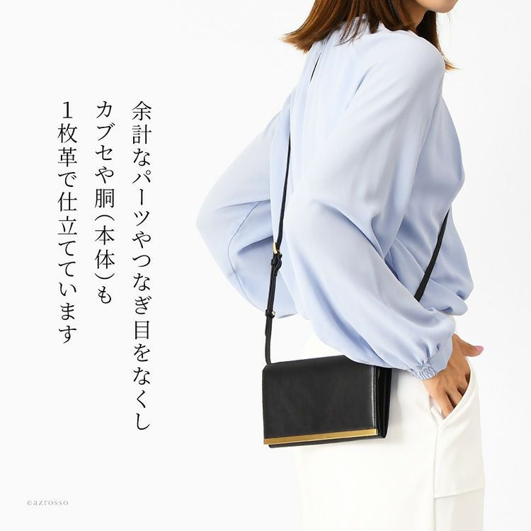 ゴールドコーティングの口金が真の上質感をまとう、一枚革で仕立てた日本製本革お財布ショルダー。ミニクラッチバッグやお財布としても使えるフォーマルシーンに合うレディースショルダーバッグ KIYOKAWA 日本製 本革 ヌメ革 お財布ショルダー ウォレットバッグ 一枚革 高級 がま口 クラッチバッグ フォーマル 清川商店(キヨカワ)
