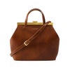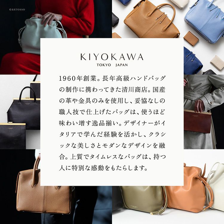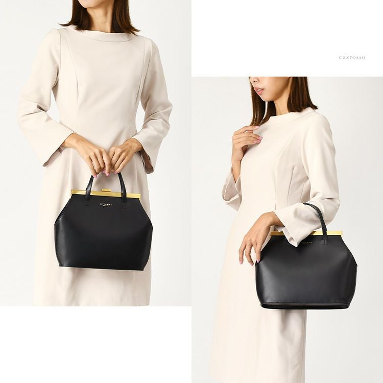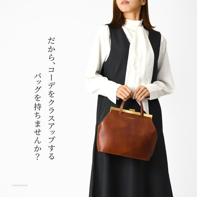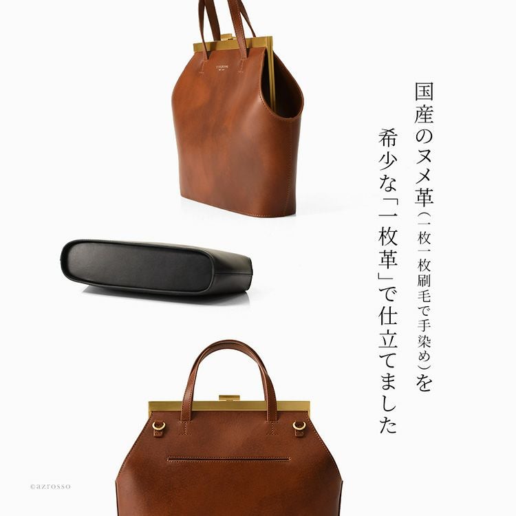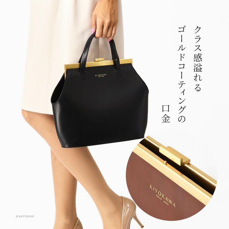 ゴールドコーティングの口金が真の上質感をまとう、一枚革で仕立てた日本製ヌメ革ハンドバッグ。ショルダーバッグとしても使えるフォーマルシーンに合う2wayバッグ KIYOKAWA 一枚革 2way ハンドバッグ ヌメ革 日本製 本革 高級 がま口 フォーマル セレモニー 清川商店(キヨカワ)