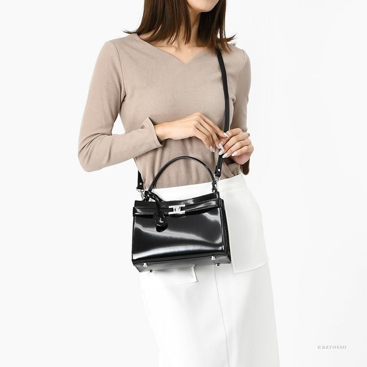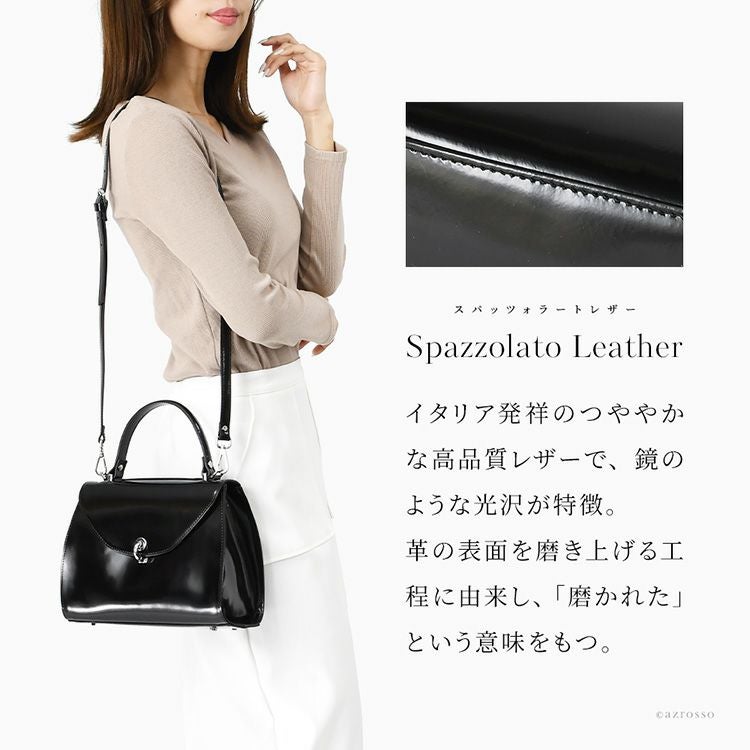 美しい艶を誇るレザーが高級感を醸し出す、おしゃれなイタリアブランドの本革ショルダーハンドバッグ。ショルダーバッグとして斜めがけもできる2wayミニバッグ。きれいめデザインでフォーマルシーンにも活躍 イタリア製 ショルダー ハンドバッグ レディース レザー フォーマル バッグ 高級 おしゃれ 2way 本革 斜め掛け 小さめ 肩掛け ブランド 上品 きれいめ