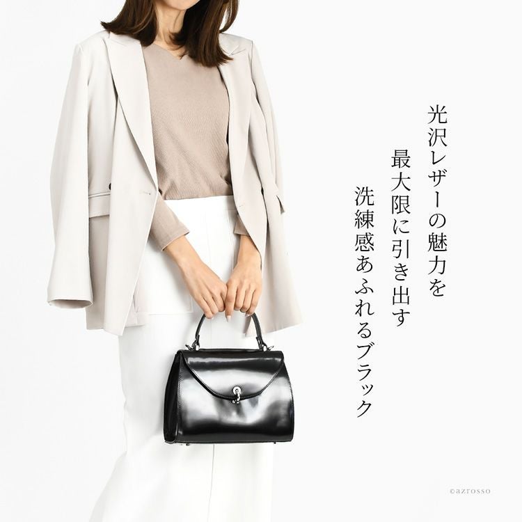 美しい光沢レザーで仕立てた、フラップデザインがおしゃれなイタリアブランドの高級本革ショルダーハンドバッグ。ショルダーバッグとして斜めがけもできる2way。きれいめだからフォーマルバッグとしても活躍。 イタリア製 レザー フォーマルバッグ フラップ ミニ ショルダー ハンドバッグ レディース 高級 おしゃれ 2way 本革 斜め掛け 小さめ