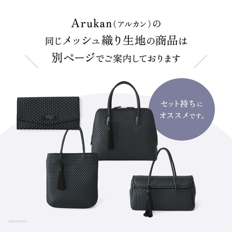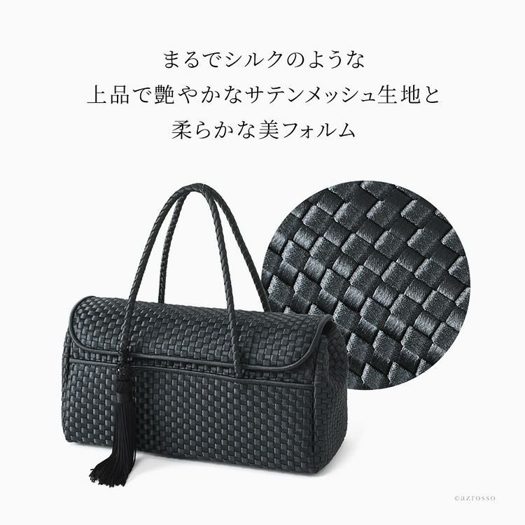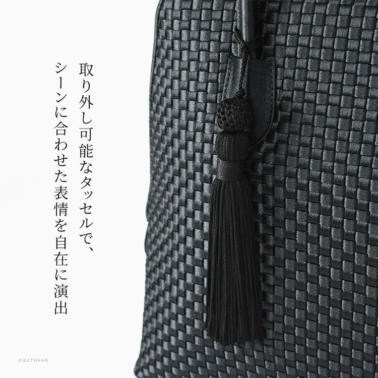 日本の老舗Takaya(高屋)ブランド アルカンの上品なサテン生地のフォーマルバッグ。ファスナー開閉口が広く出し入れ簡単。入学式や卒業式、お受験、結婚式など冠婚葬祭から普段使いまで使える万能なバッグ。 フォーマル ハンドバッグ 慶弔両用 黒 普段使い タッセル付き 自立する 撥水 軽量 冠婚葬祭 セレモニー ブラックフォーマル 日本製 高屋 アルカン
