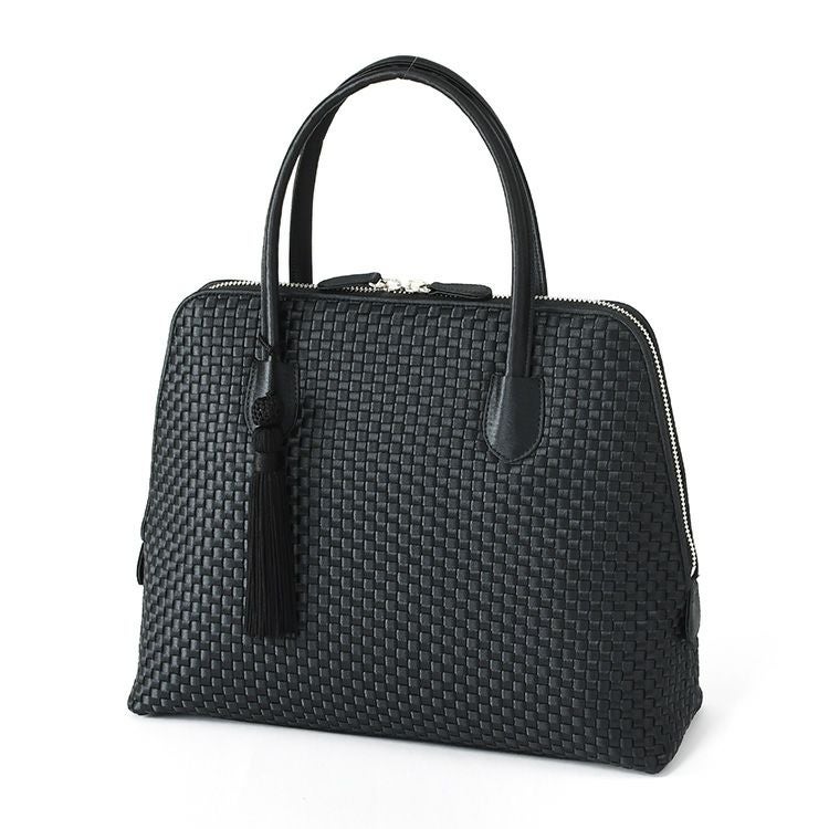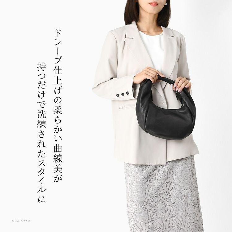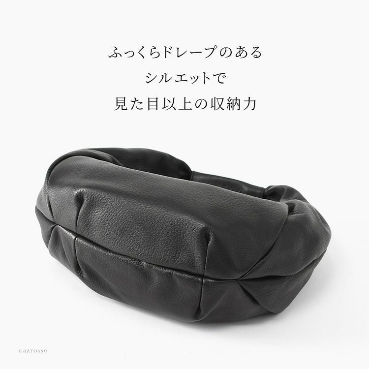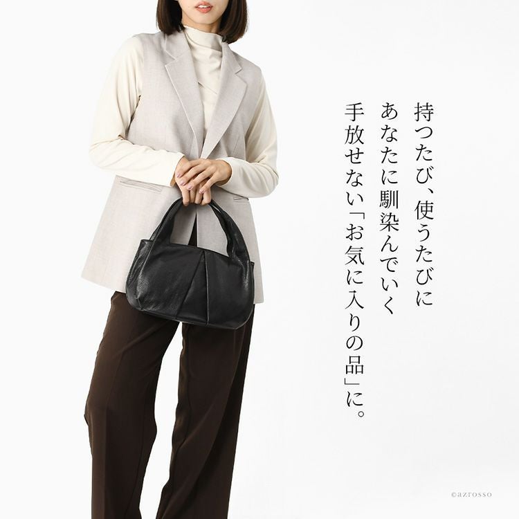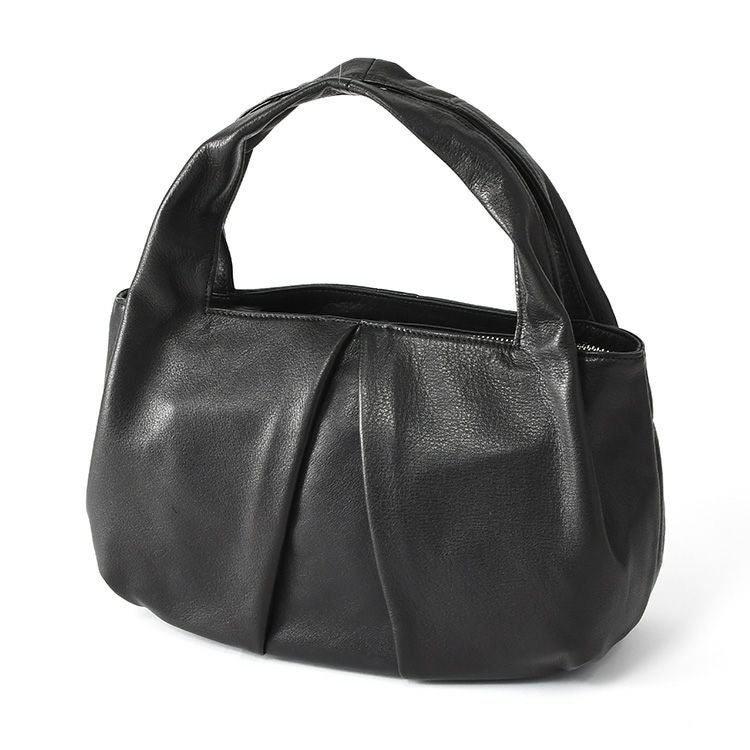 日本の老舗ブランドTakaya(高屋)アルカンのラウンドタックが美しい黒のハンドバッグ。ふっくらフォルムでペットボトル収納可能。休日のお出かけや旅行、普段使いに。入学式や卒業式などフォーマルにも使えるバッグ。 ハンドバッグ 黒 レザー お出かけ バッグ レディース フォーマル ドレープ ブラック 本革 普段使い 丈夫な 一生使えるバッグ 日本製 高屋 アルカン