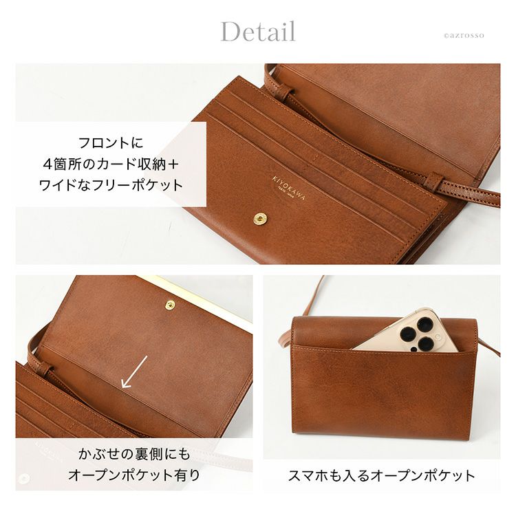 KIYOKAWA 日本製 本革 ヌメ革 お財布ショルダー ウォレットバッグ 一枚革 高級 がま口 クラッチバッグ フォーマル 清川商店(キヨカワ)