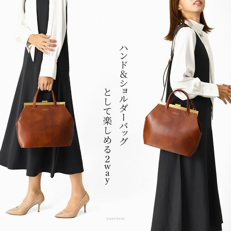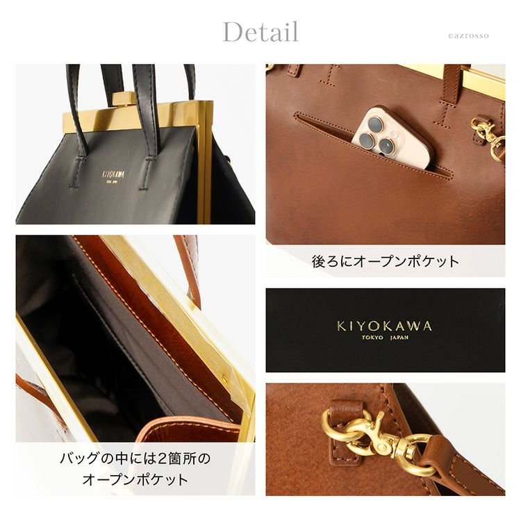 KIYOKAWA 一枚革 2way ハンドバッグ ヌメ革 日本製 本革 高級 がま口 フォーマル セレモニー 清川商店(キヨカワ)
