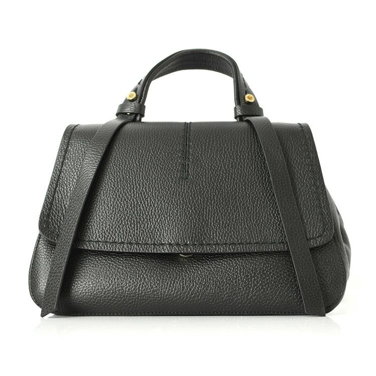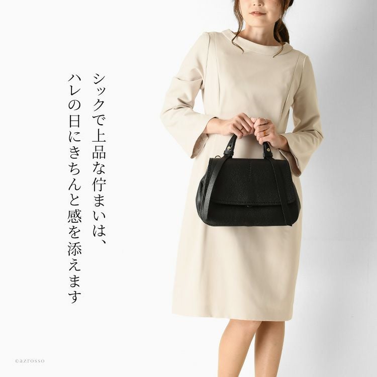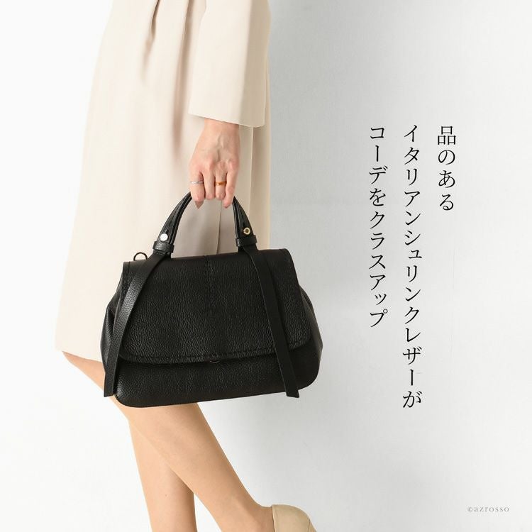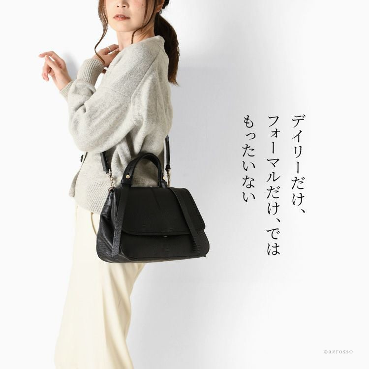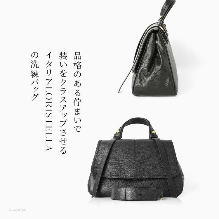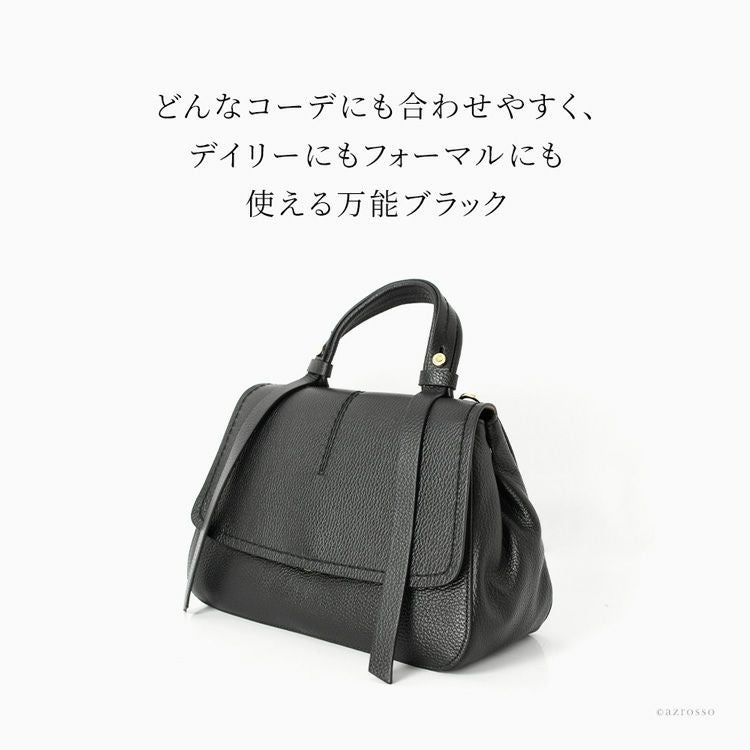 フォーマルにも使える 本革 黒 2way ハンドバッグ ショルダーバッグ 太ベルト イタリア製 フォーマルバッグ