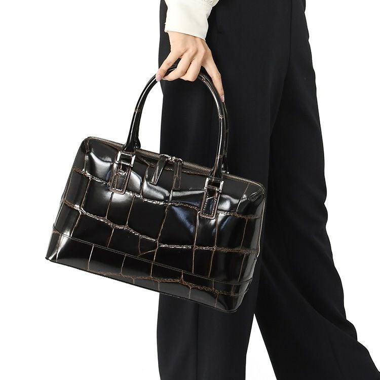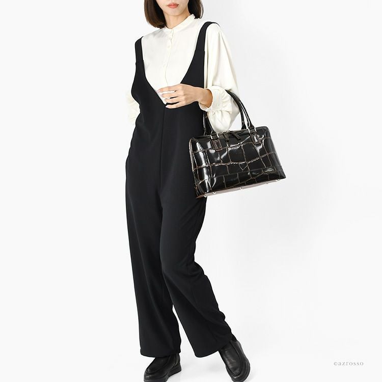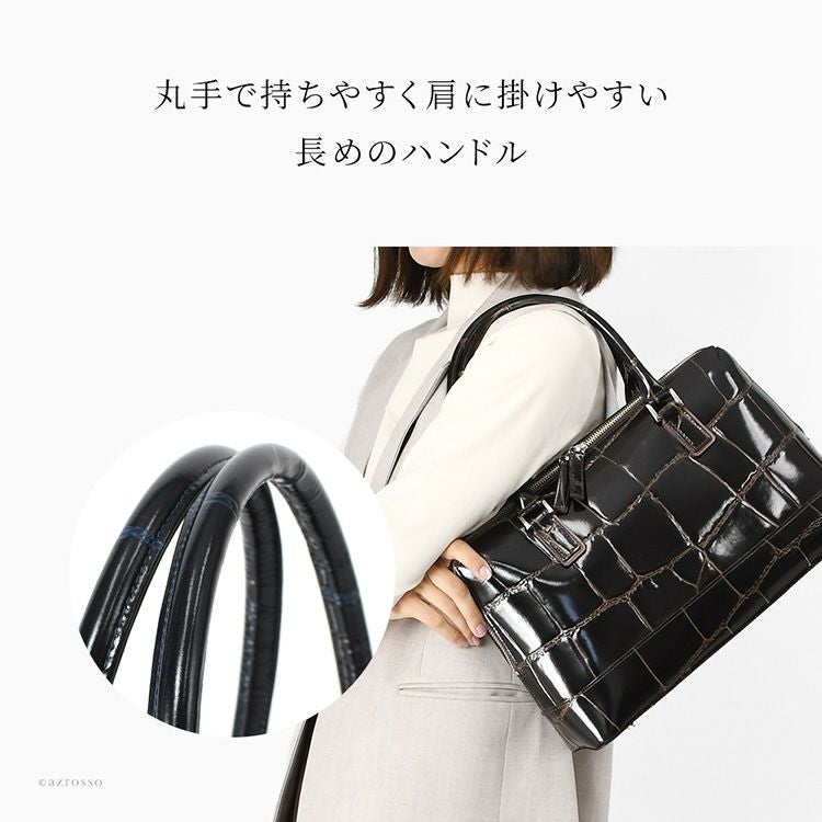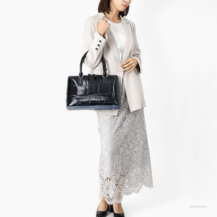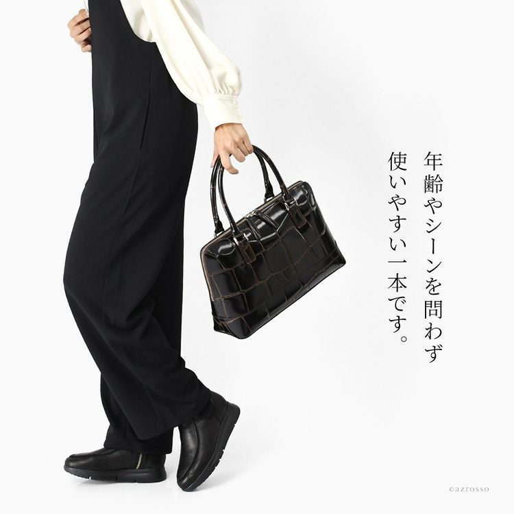 日本製 クロコ型押し ボストンバッグ レディース 軽量 おしゃれ A4 本革 トートバッグ ハンドバッグ 自立 底鋲 通勤 フォーマル
