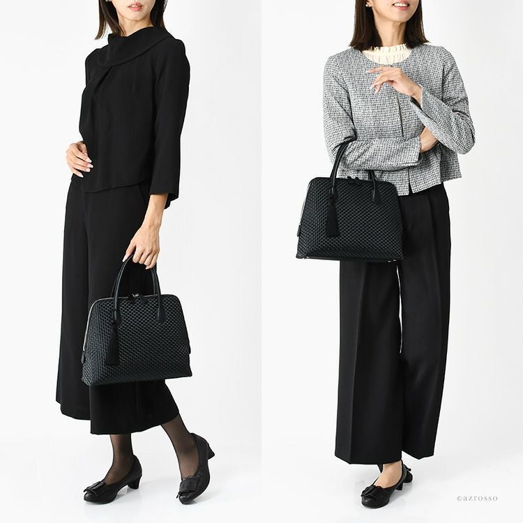 フォーマル ハンドバッグ 慶弔両用 黒 普段使い タッセル付き 自立する 撥水 軽量 冠婚葬祭 セレモニー ブラックフォーマル 日本製 高屋 アルカン