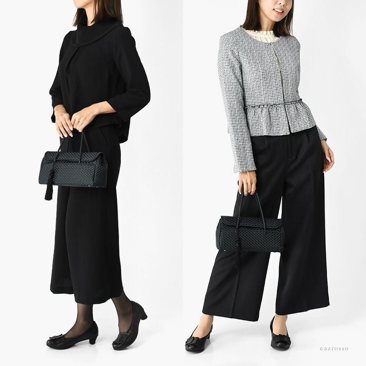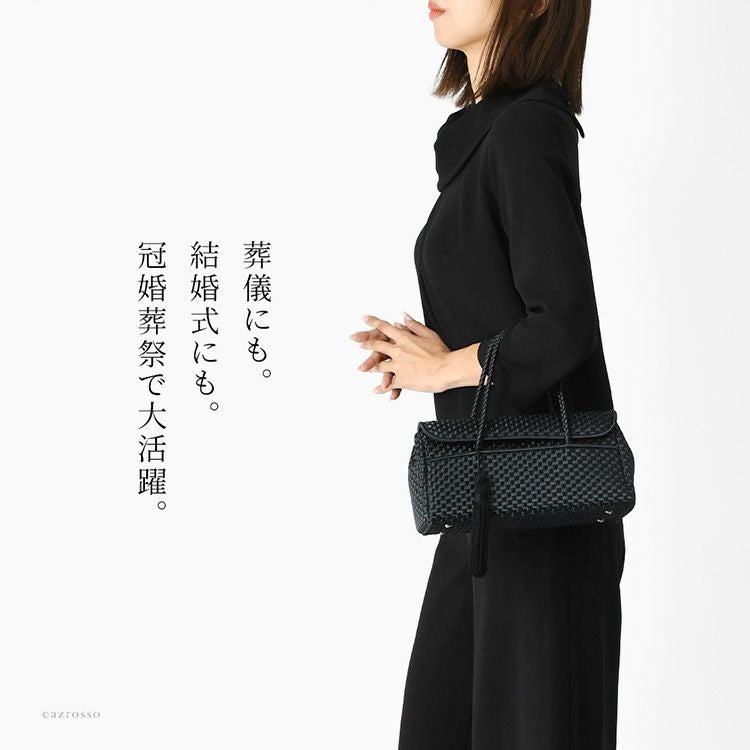 フォーマル ミニバッグ 慶弔両用 黒 普段使い 小さめ 自立する タッセル付き 撥水 冠婚葬祭 セレモニー ブラックフォーマル 日本製 高屋 アルカン
