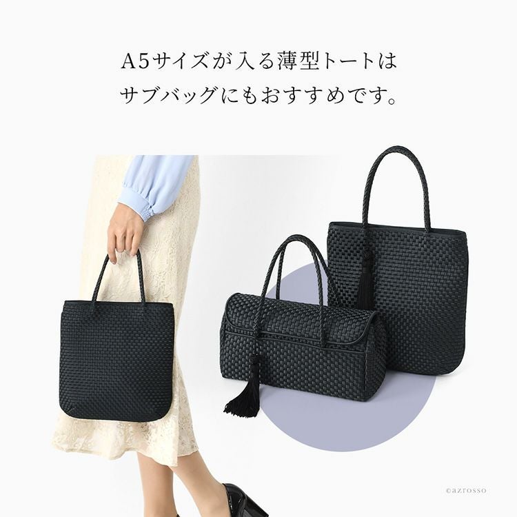 サブバッグ フォーマル 冠婚葬祭 黒 普段使い タッセル付き 薄型トート 撥水 軽量 慶弔両用 セレモニー ブラックフォーマル 日本製 高屋 アルカン