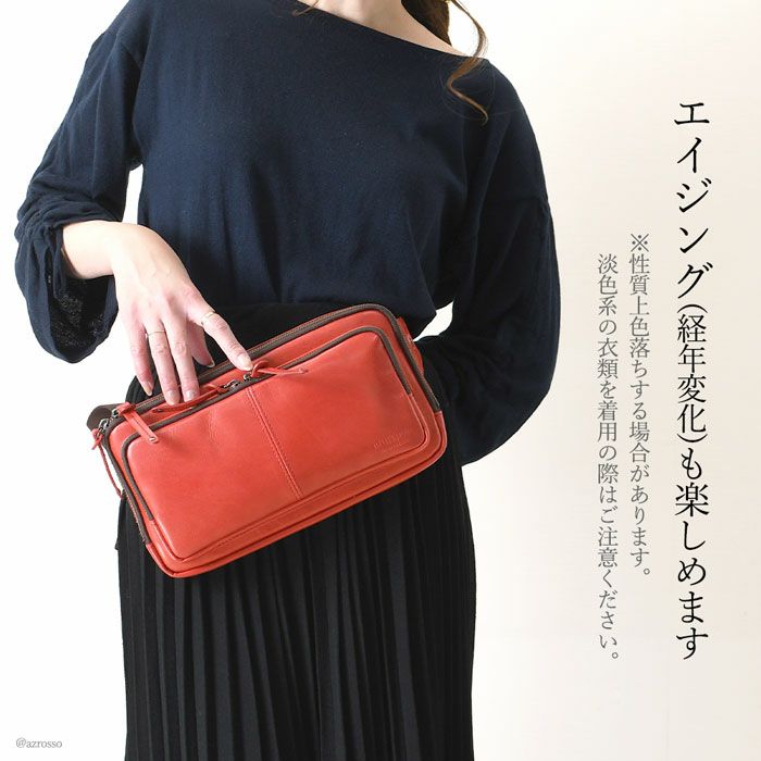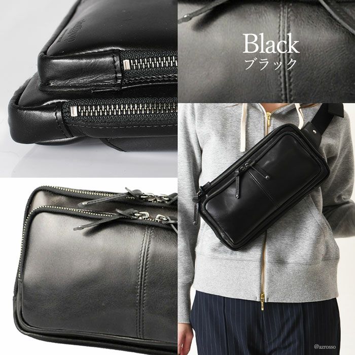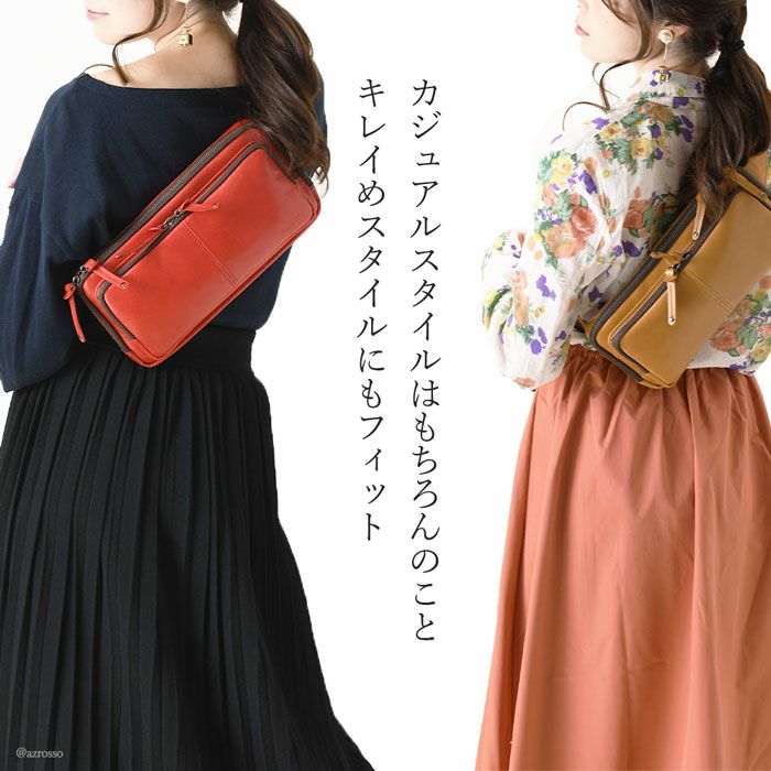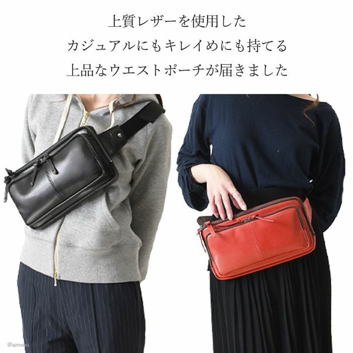 牛革 ウエストポーチ ボディバッグ 本革 レザー バッグ 日本製 大きめ 薄マチ Wファスナー レディース