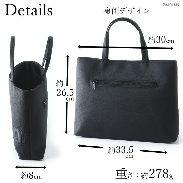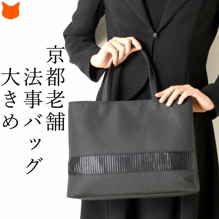 法事バッグ 黒 布製 日本製 自立 ファスナーつき 軽量 お葬式、告別式、仏事のサブバッグ