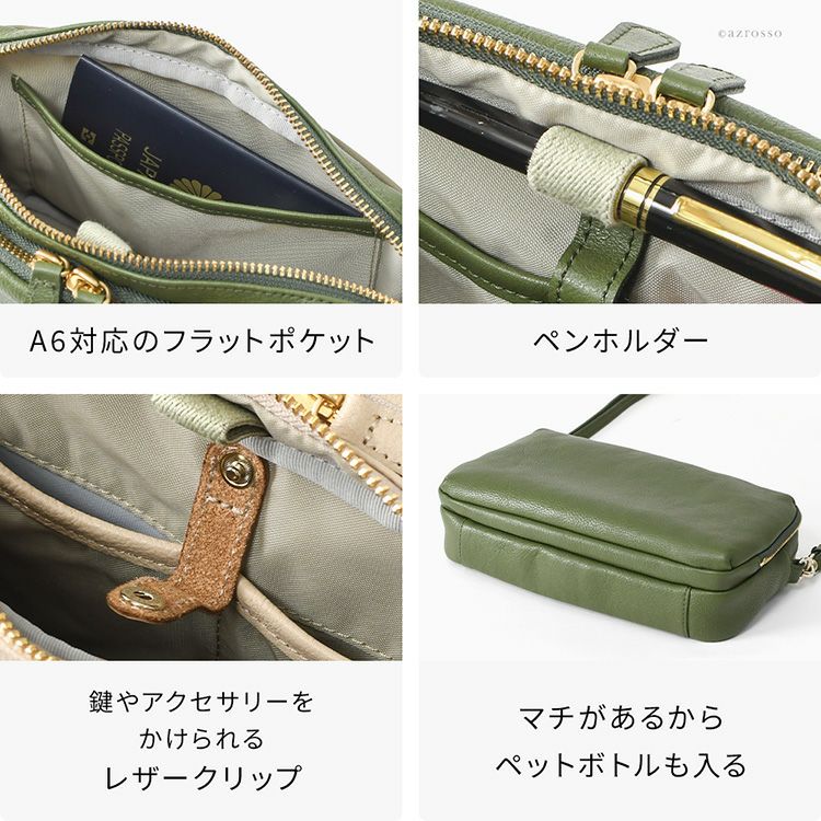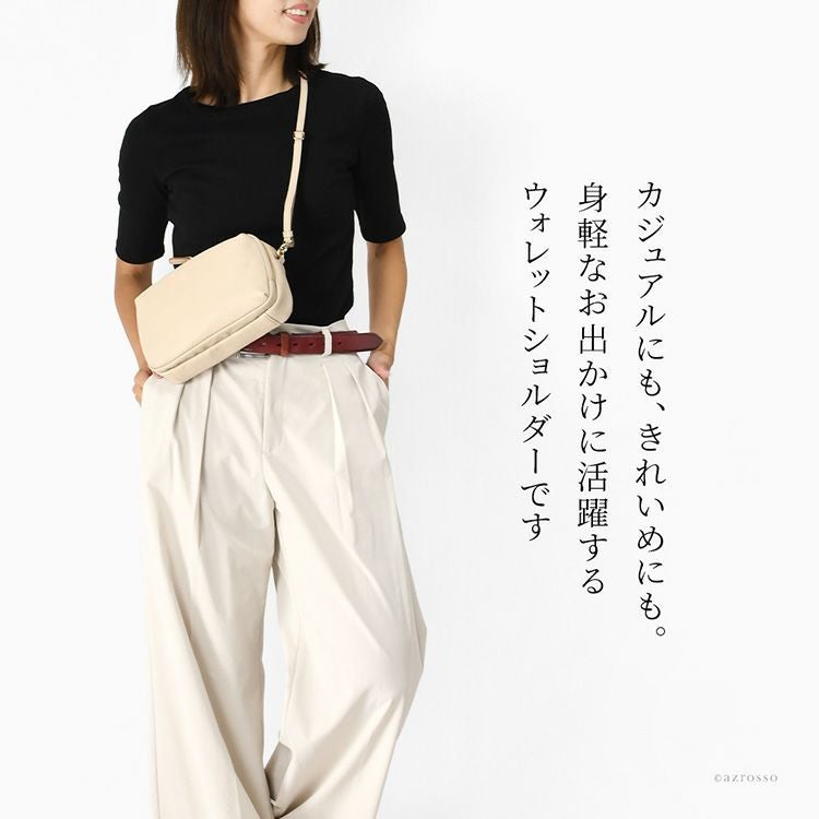 日本製 お財布ショルダーバッグ 軽量 レディース 2way 本革 撥水 ウォレットバッグ ナイロン ポシェット 小さめ スマホショルダー ペットボトル 入る