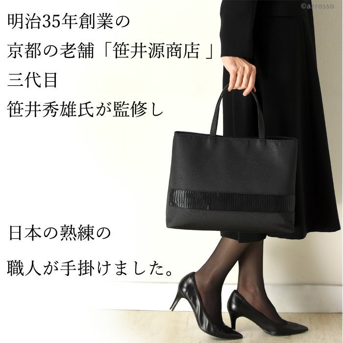 日本製の法事用バッグ。京都老舗が監修した収納力が嬉しいちょっと大きめ。 法事バッグ 黒 布製 日本製 自立 ファスナーつき 軽量 お葬式、告別式、仏事のサブバッグ