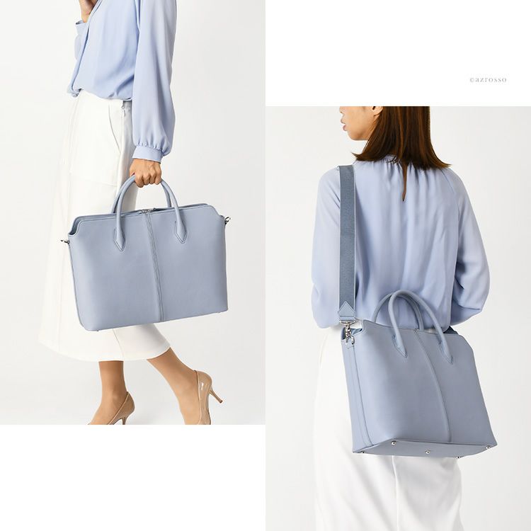 革の持つ重厚な高級感を損なうことなく加工された軽量レザーを使用。ラグジュアリーな佇まいながら軽く、機能的にもお値段的にも使いやすい働く女性のためのバッグです。