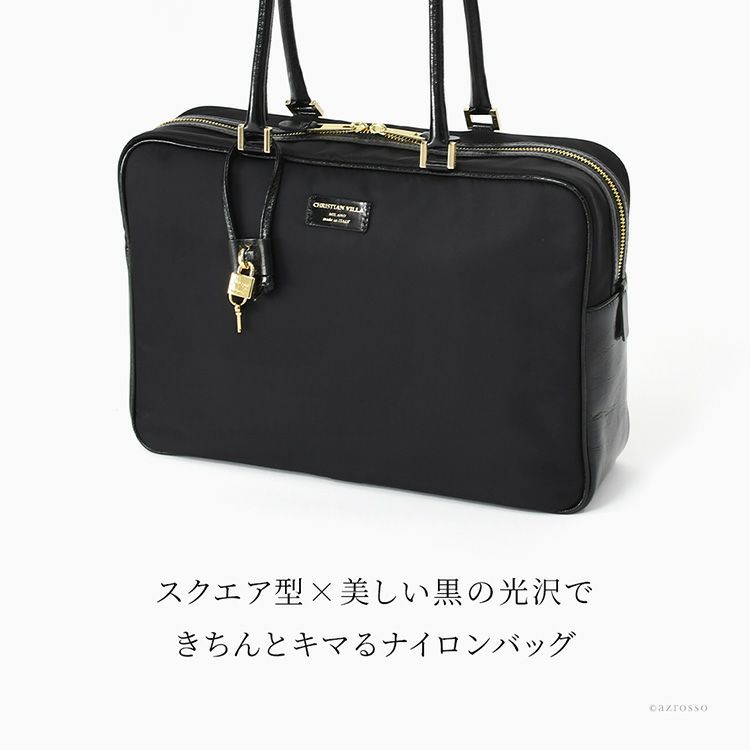 本体には軽量なナイロン素材、ポイントとなる配色には本革素材を採用し、通勤用を考慮した実用性とビジネスウーマンの品格を両立。