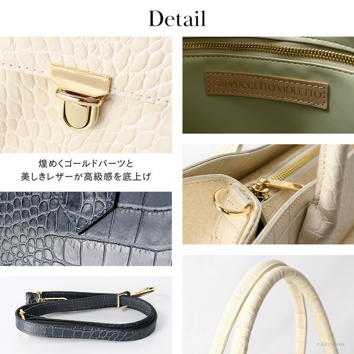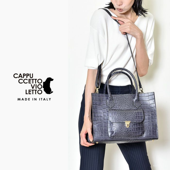 持つだけでコーデをクラスアップする、コッコジェーン(クロコ型押し調)レザートートバッグをイタリア製 Cappuccetto Violetto(カプチェット ヴィオレット)から