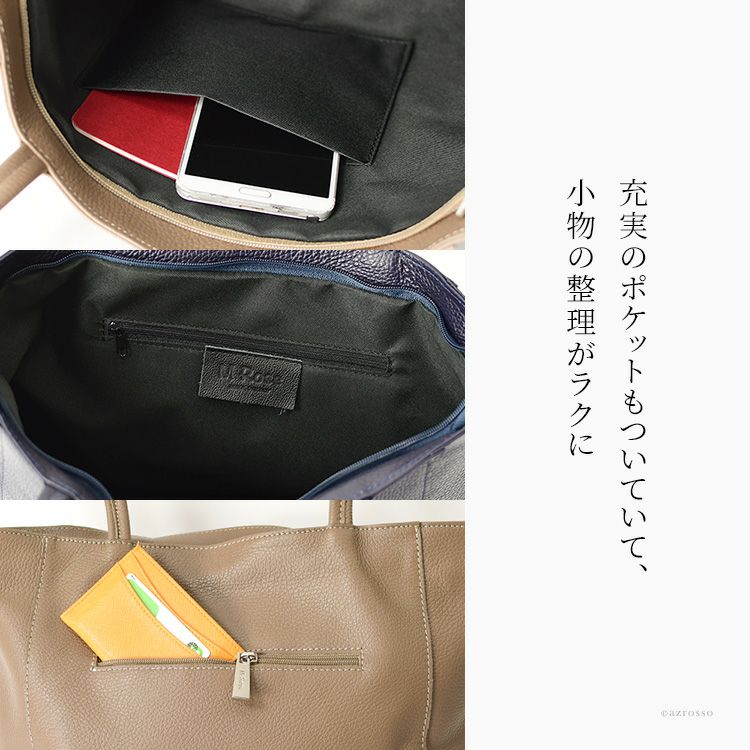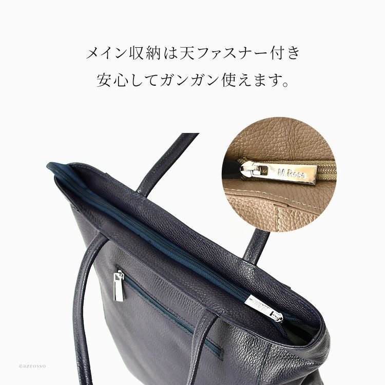 イタリア製 トートバッグ 撥水 A4対応 本革 ブランド M Rose エムローズ ネイビー トープ 通勤 カジュアル
