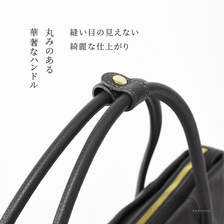 革の持つ重厚な高級感を損なうことなく加工された軽量レザーを使用。ラグジュアリーな佇まいながら軽く、機能的にもお値段的にも使いやすい働く女性のためのバッグです。
