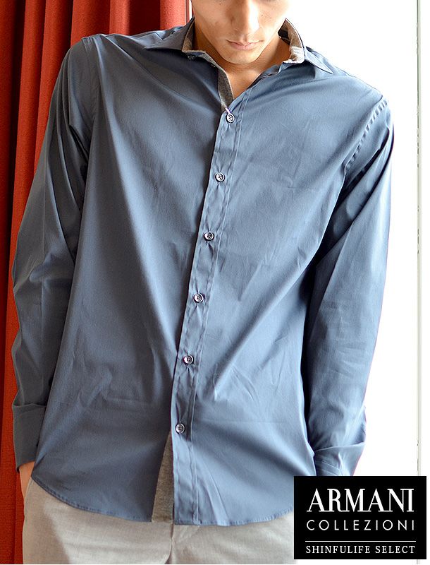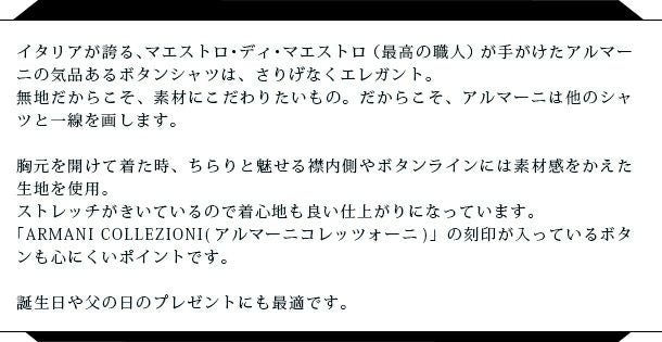 メンズ ドレス シャツ アルマーニ コレツィオーニ ARMANI COLLEZIONI ストレッチ ボタン KCSMZT 長袖 無地