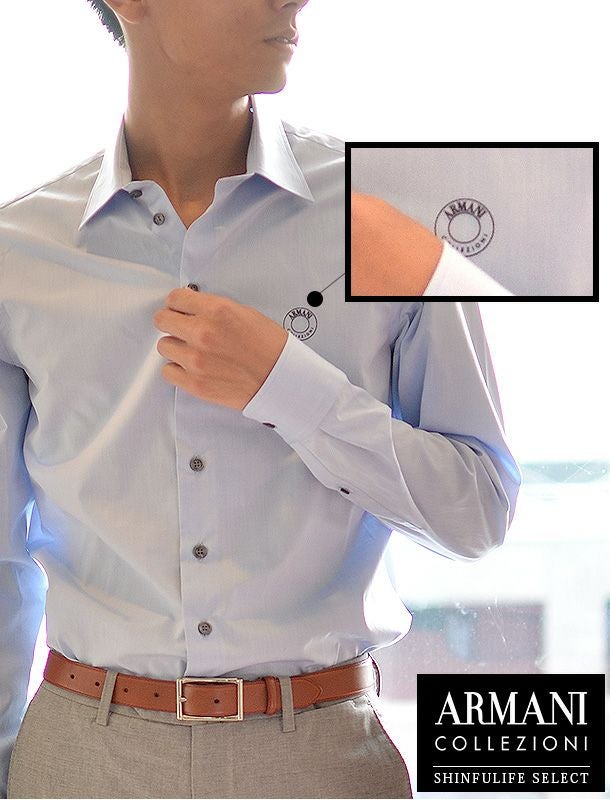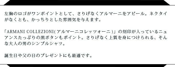 メンズシャツ アルマーニ コレツィオーニ【ARMANI COLLEZIONI】 ワイシャツ コットン ロゴ入り ボタン KCSS0L 無地