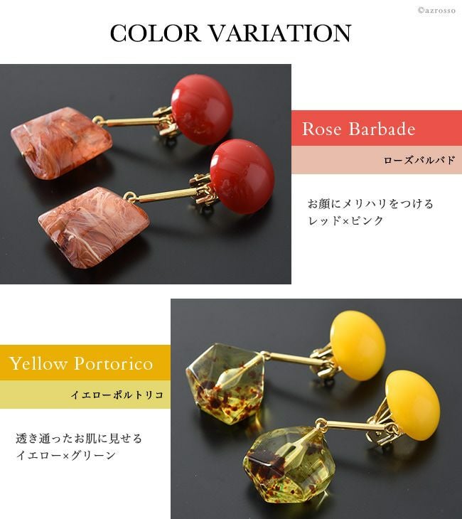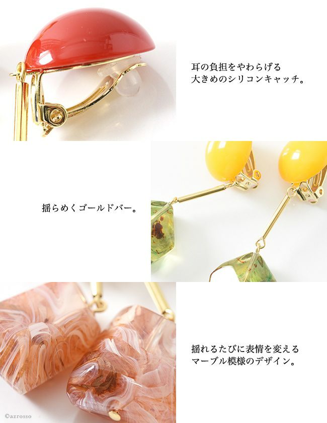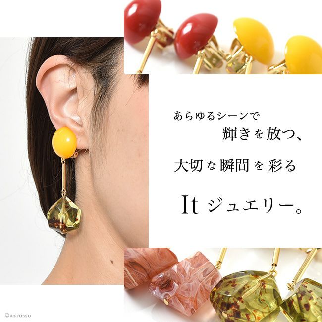 揺れる大ぶりイヤリング フランス製 痛くない 樹脂 赤 レッド ピンク イエロー グリーン 大きめ 揺れる イアリング 結婚式 パーティ 誕生日 プレゼント