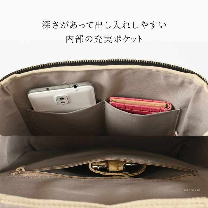 こんなにたっぷり入ってもミニバッグ感覚で持てる、計算されたフォルムは2wayどちらで使ってもおしゃれにキマります。