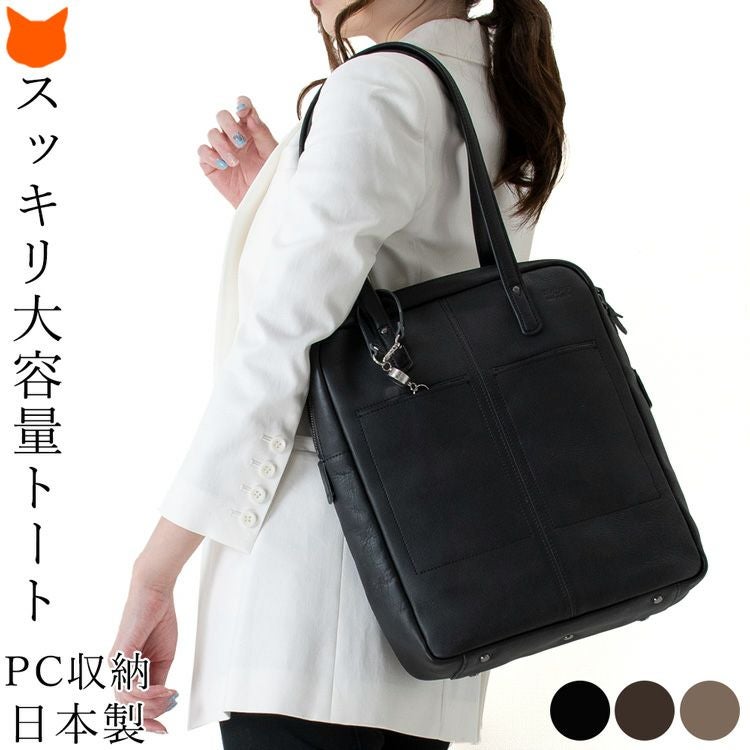PC収納 通勤バッグ 縦型 トートバッグ 大容量 A4 本革 パスケース付き 日本製 豊岡 鞄 ビジネスバッグ レディース