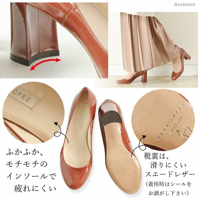 22cm-25cm│6cm チャンキーヒール エナメルパンプス PURA LOPEZ プーラロペス スペイン製