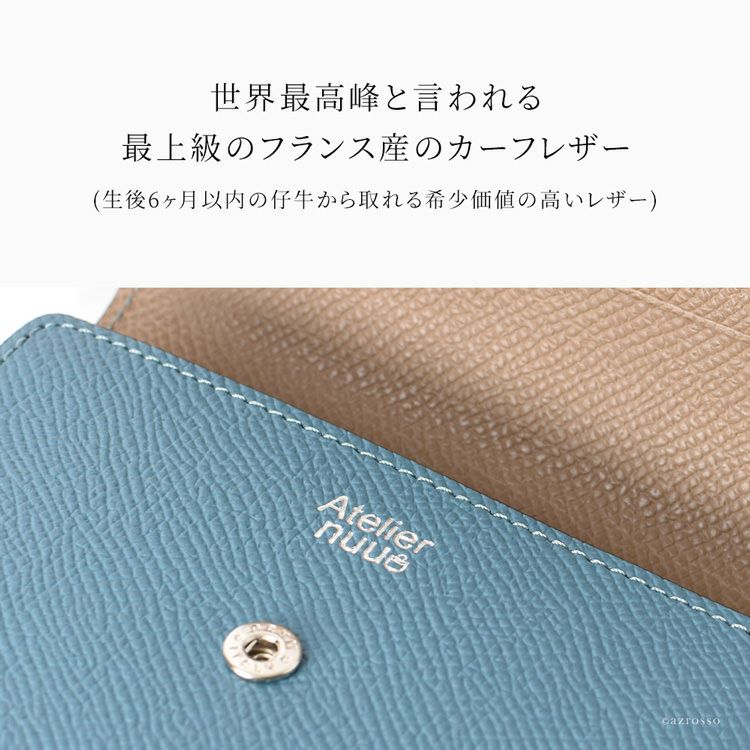 ※世界最高峰と言われる最上級のフランス産の仔牛レザーを使用しています。美しい微細な型押しの仕上げはキズなどが目立ちにくく表情豊か。エイジングもしにくく、耐久性が強いのが特徴です。