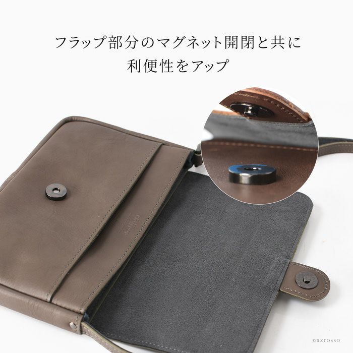 ミニ ショルダーバッグ レザー 本革 斜めがけ バッグ 横型 撥水 ポシェット 黒 ブラック ブラウン グレー 日本製 豊岡 鞄 ブランド 服部 レディース ミニバッグ