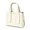 たくさんはいるのにエレガントな大人の女性のためのビジネスレザートートバッグ。長さ調節可能なショルダーストラップ付きの2way仕様で、腕にかけても肩にかけてもキマるシルエットは通勤の強い味方です。真っ白ではなく、クリーム色とキャメルのレザーのコンビが上品かつ高感度。新年度の通勤スタイルにはなを添えます。